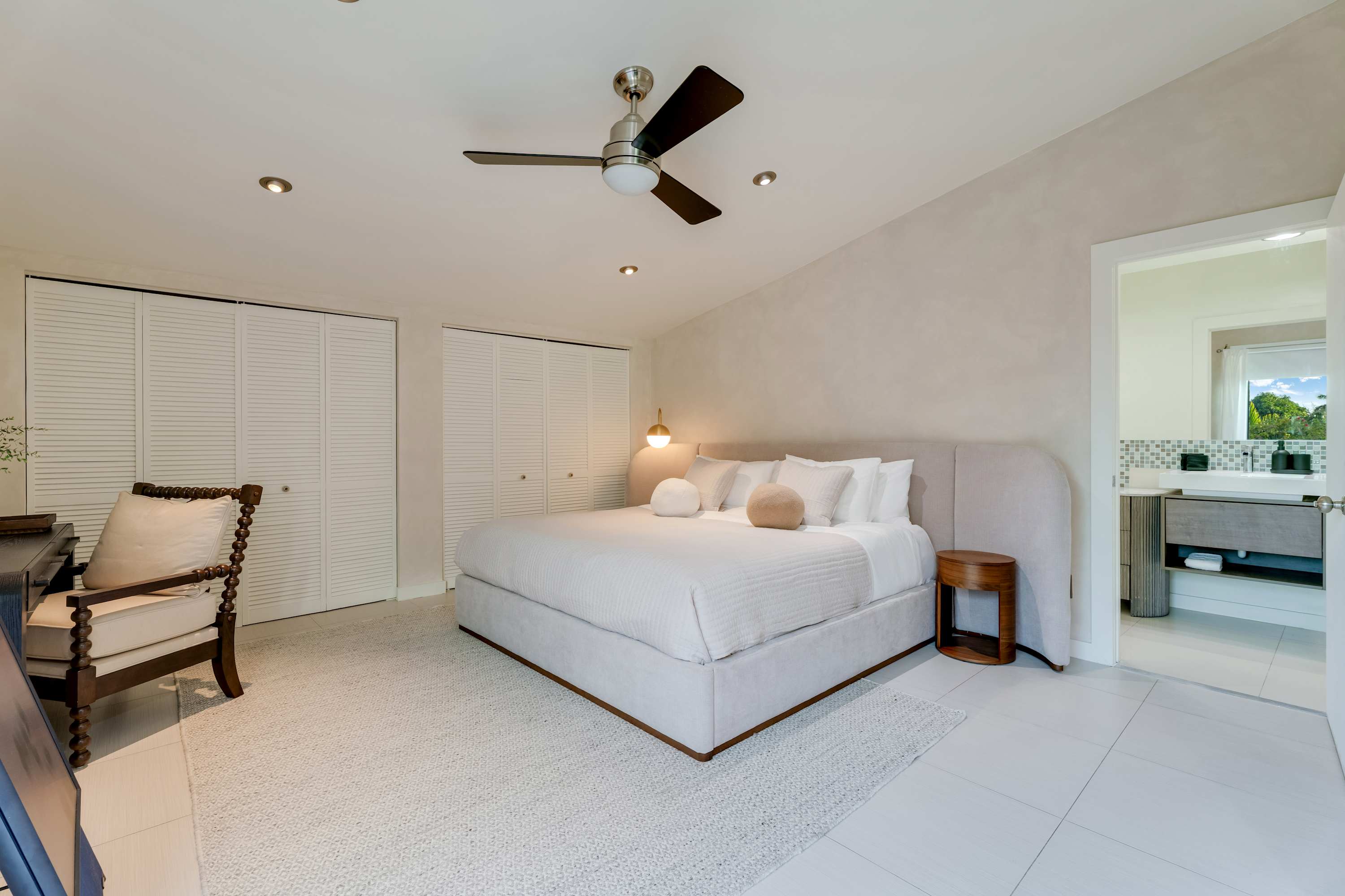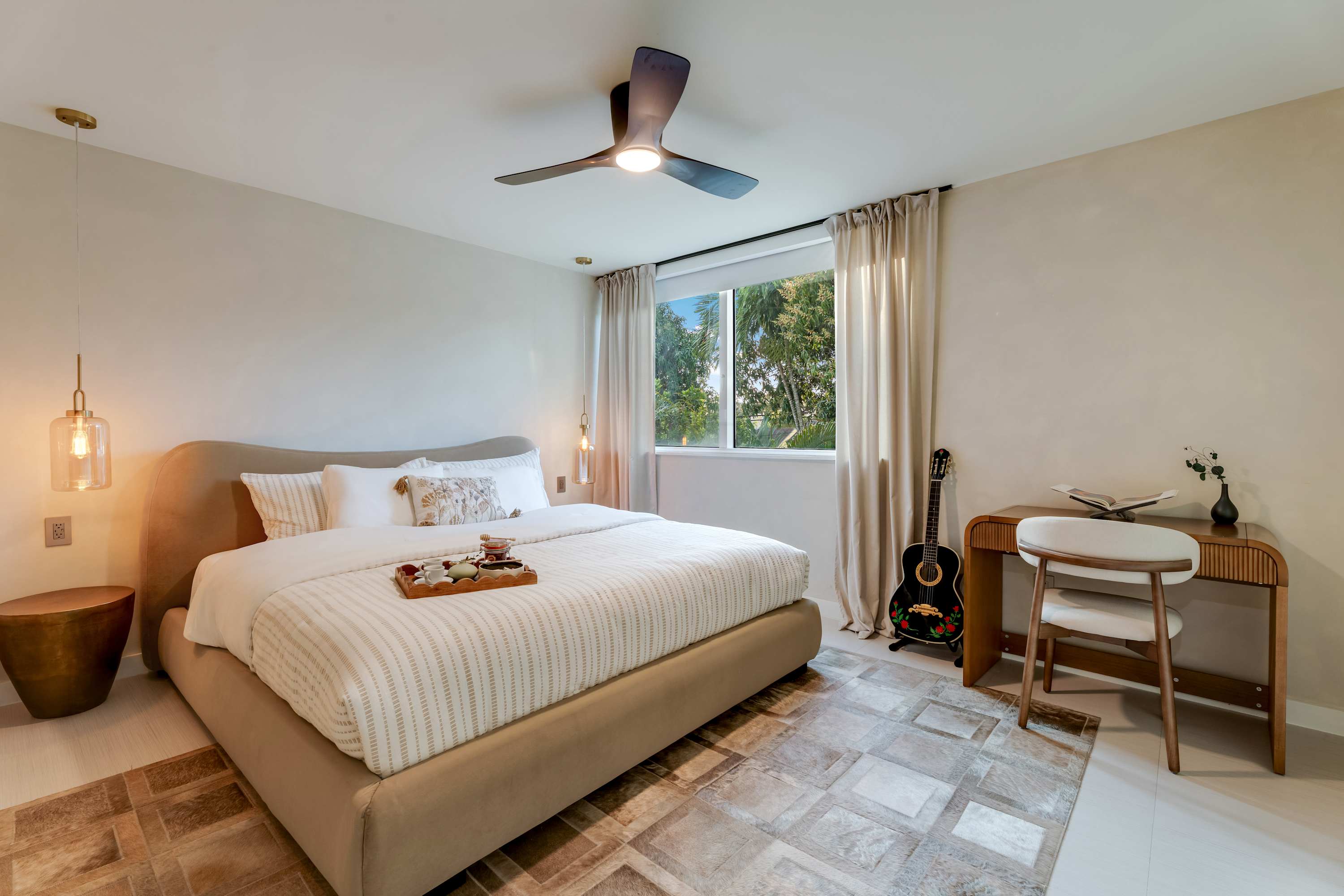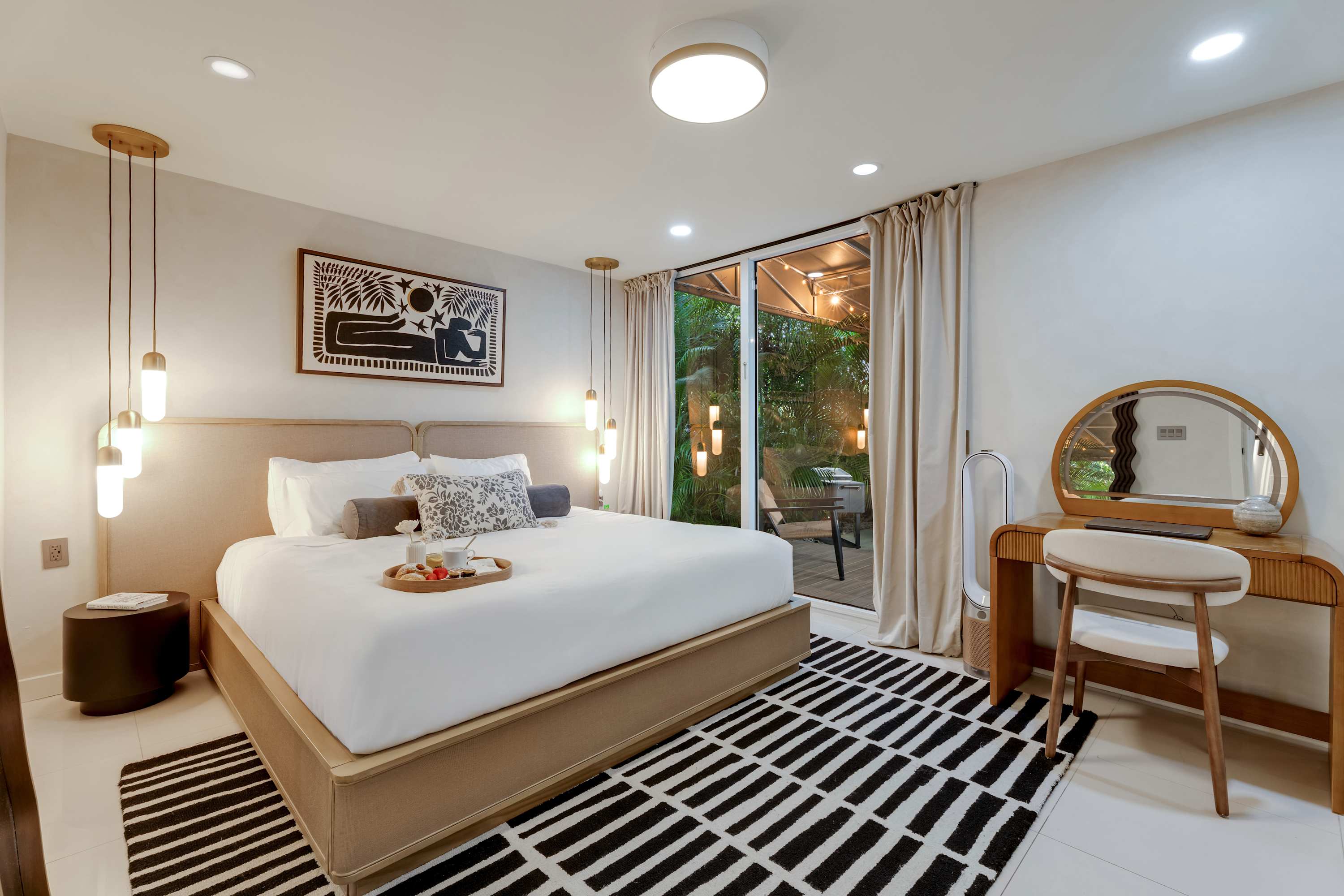 Features a king-size bed, work desk, and direct access to the patio, allowing for seamless indoor-outdoor living.