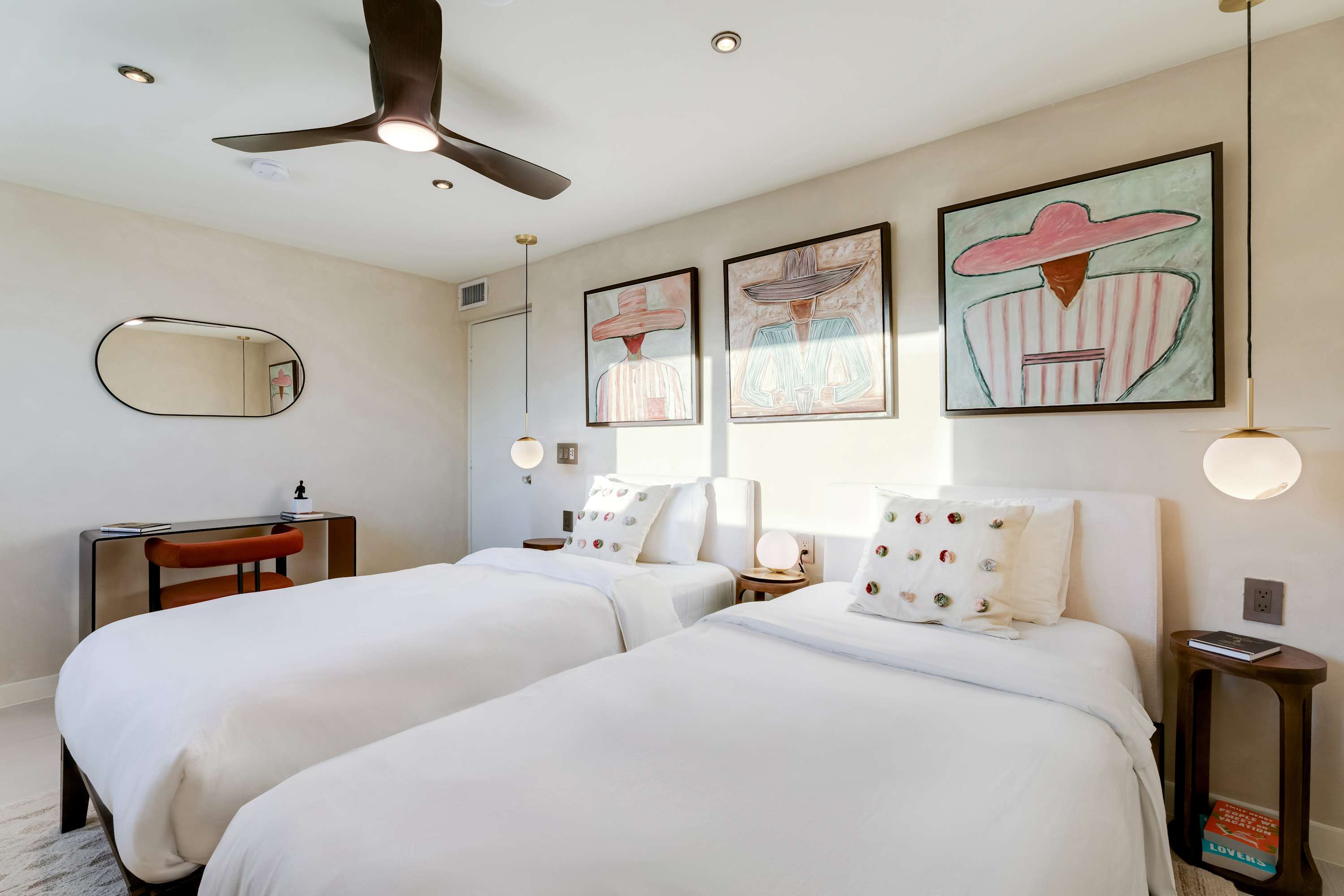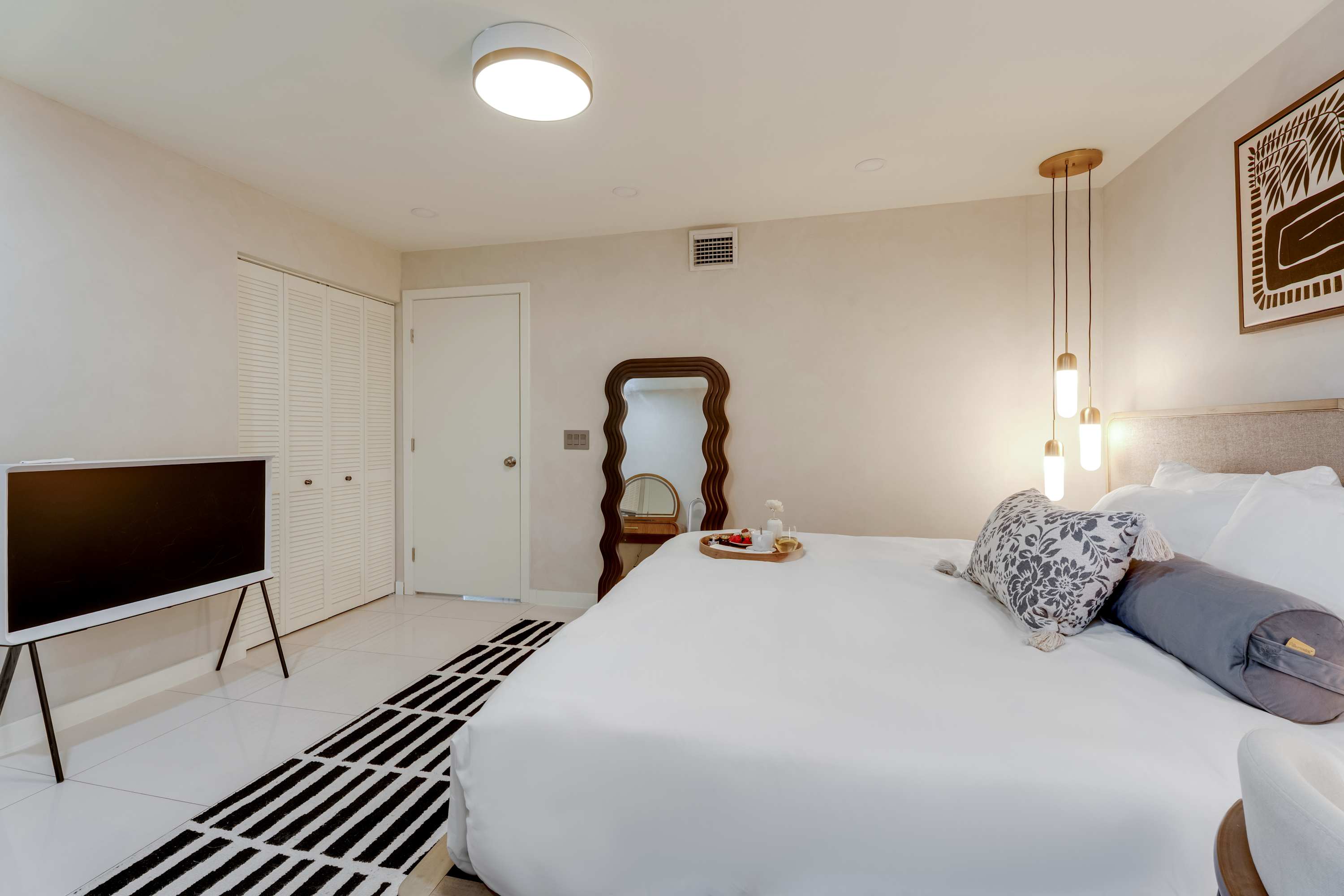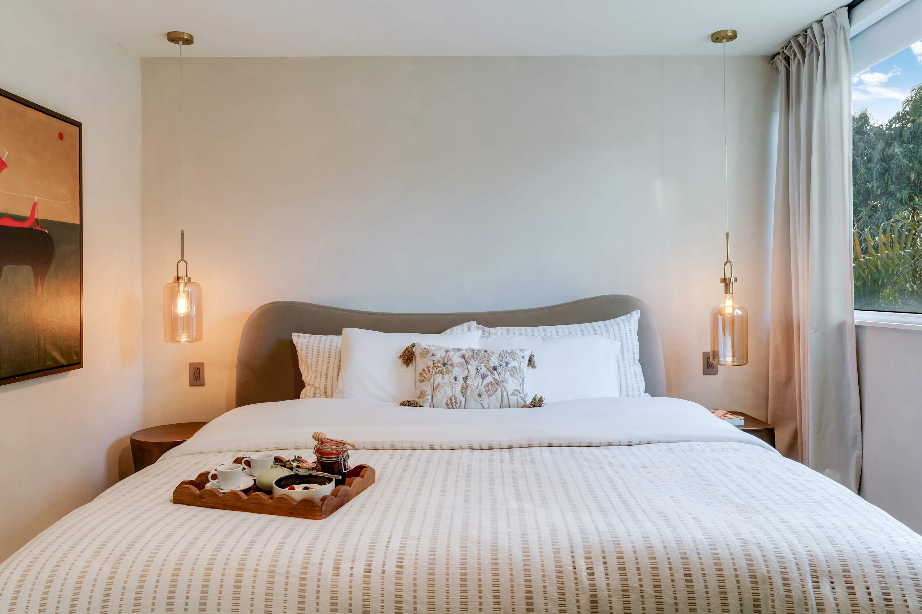 Features a king-size bed, work desk, and direct access to the patio, allowing for seamless indoor-outdoor living.