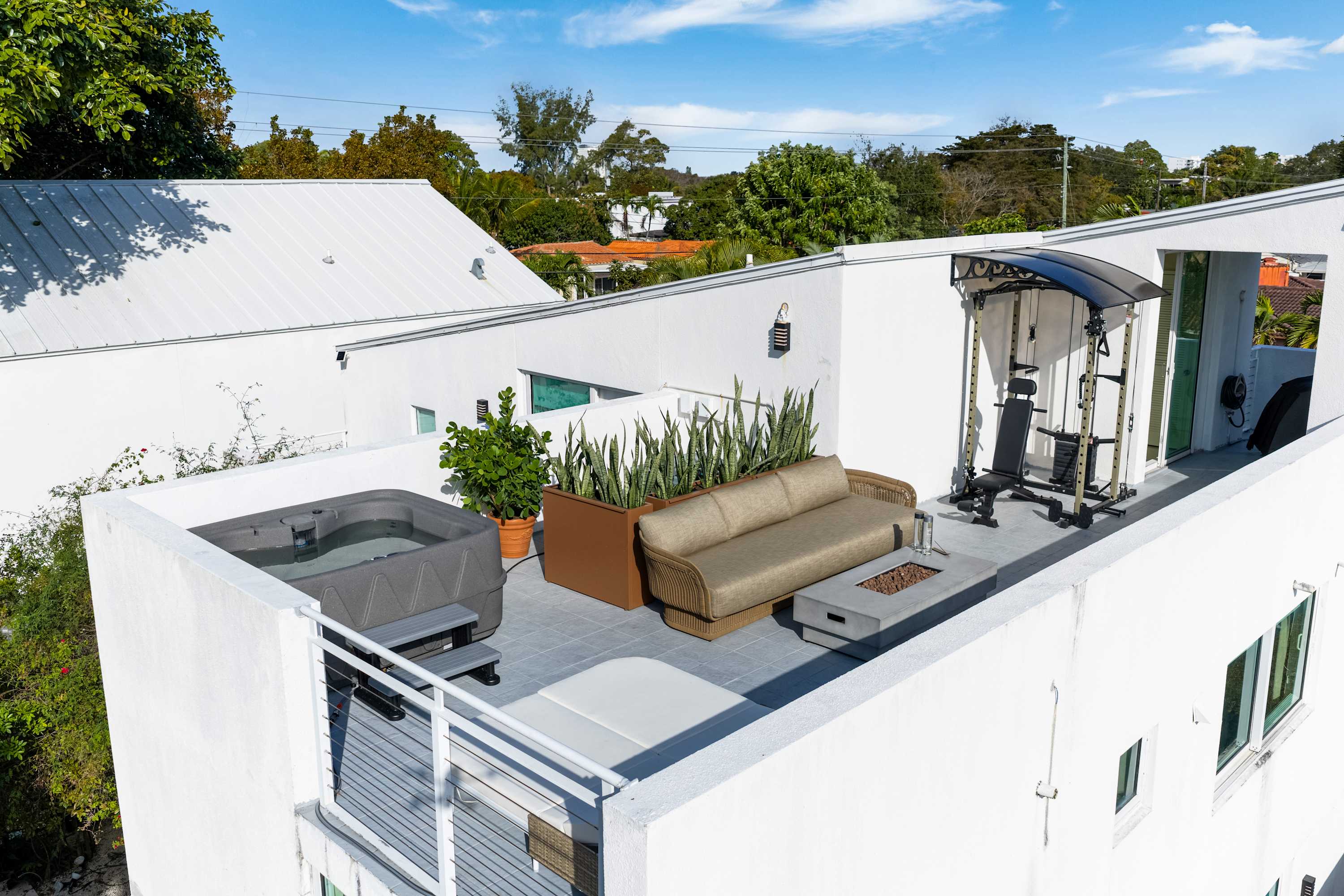 A truly special fourth-level retreat with sweeping views of the city skyline. Lounge in the sun or gather around the fire pit at sunset as Miami glows around you. Designed for quiet mornings, golden hour rituals, and memorable nights above it all.