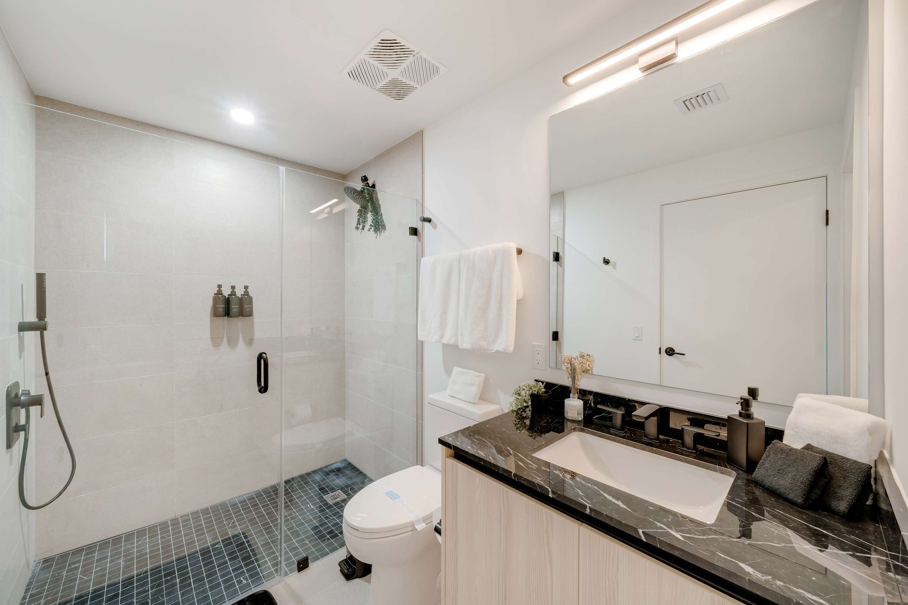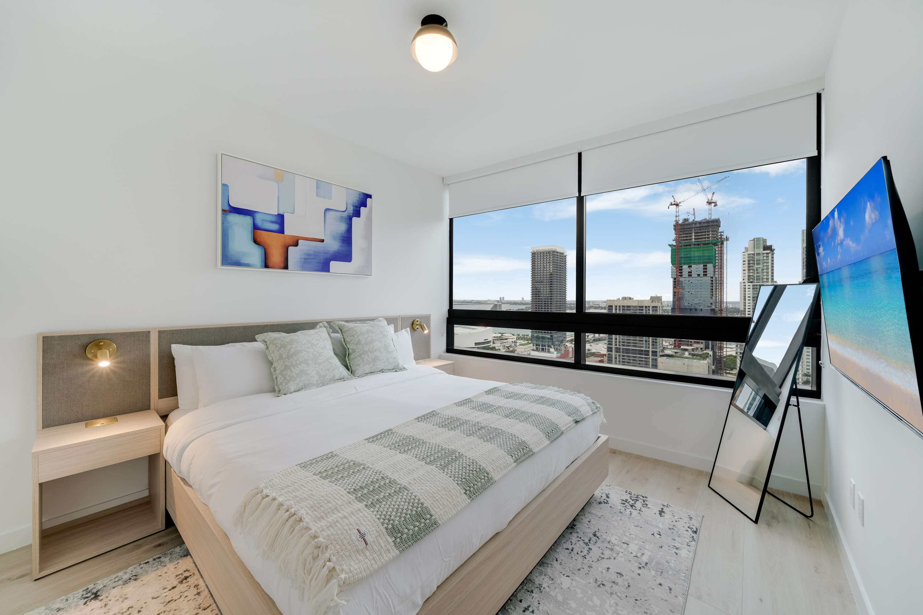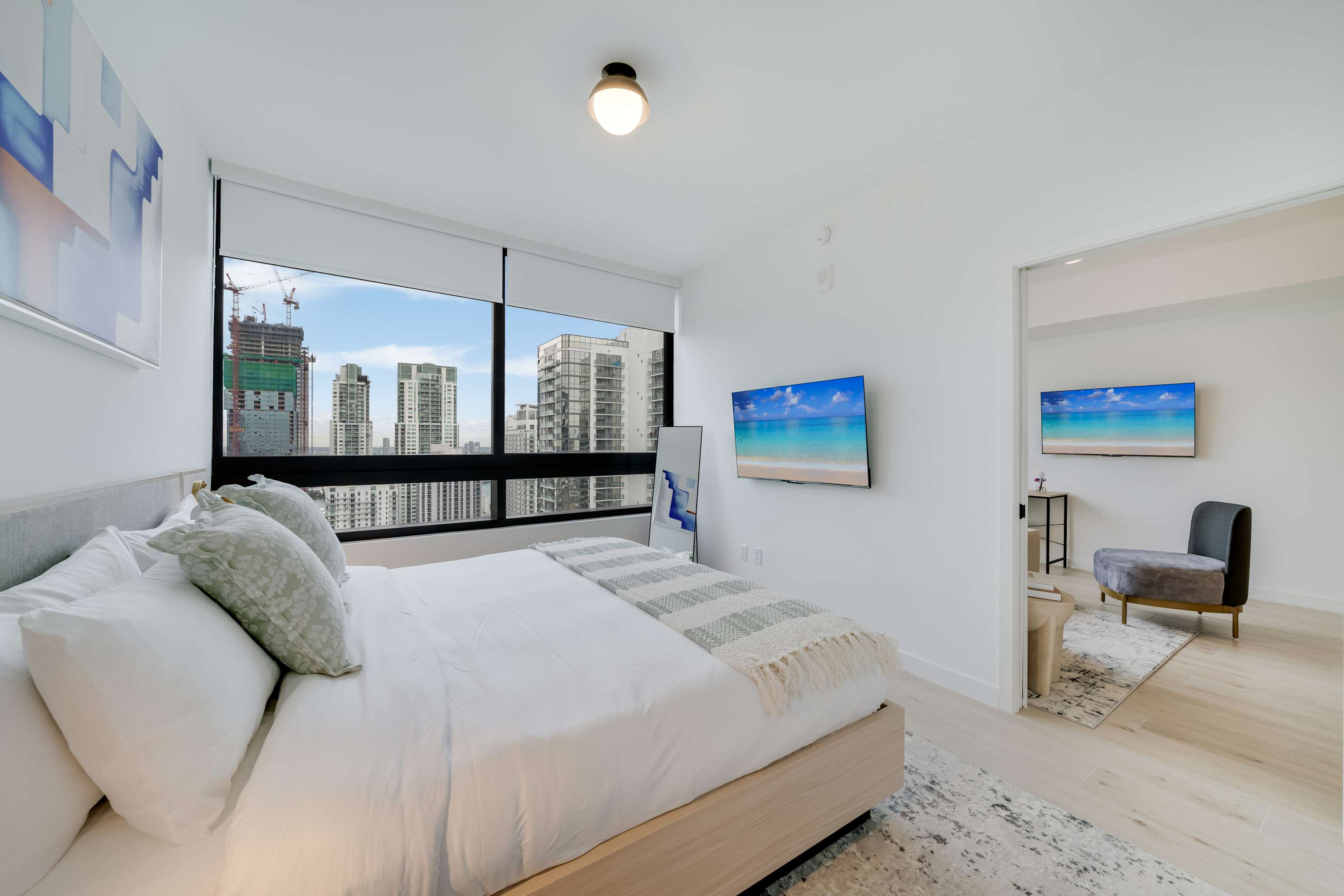 Includes WiFi, Smart TVs, ironing set, laundry facilities, and starter toiletries. Note: Washcloths and kitchen towels not included.