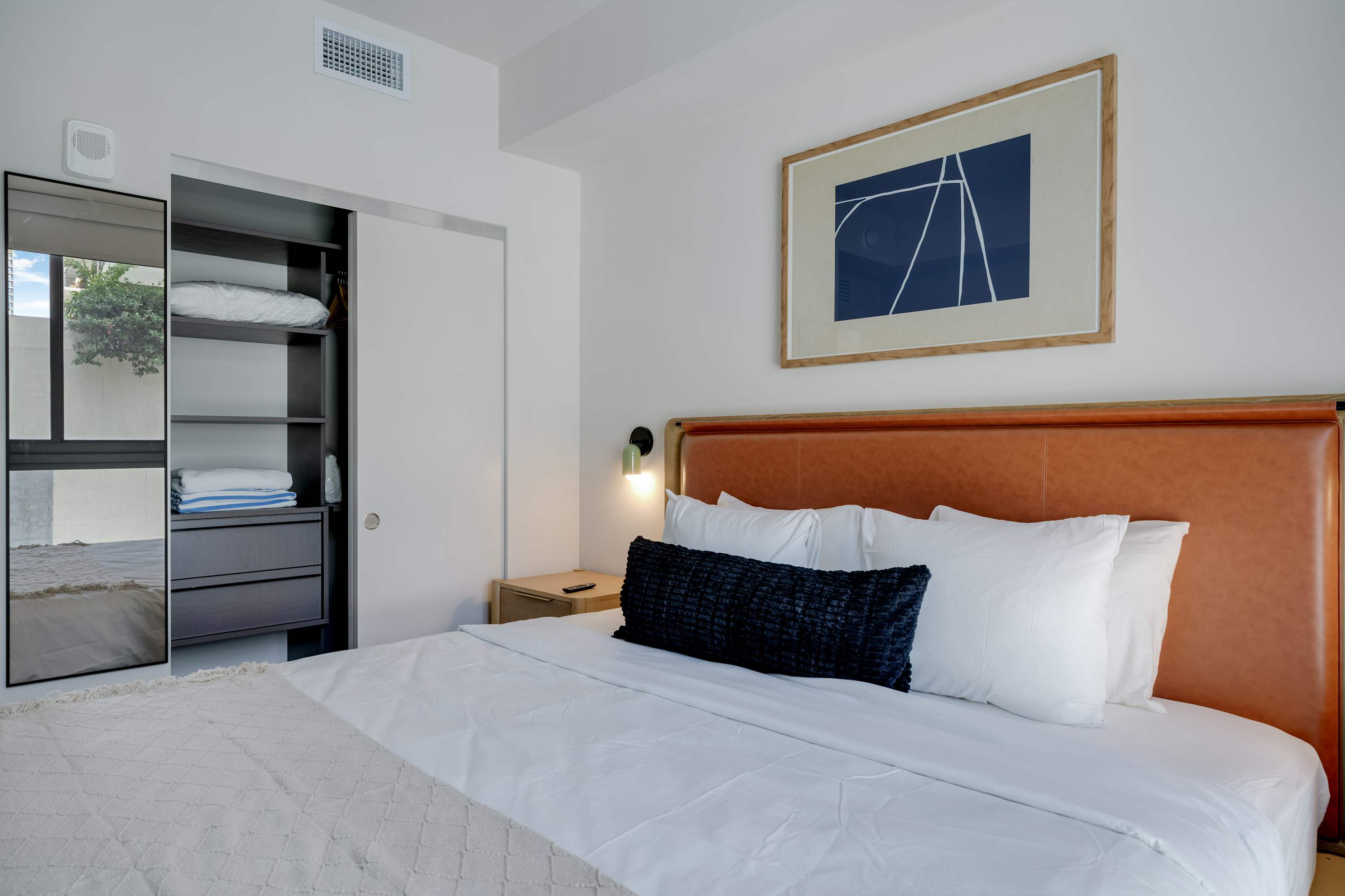 Features a King size bed, Smart TV, and ample storage space.