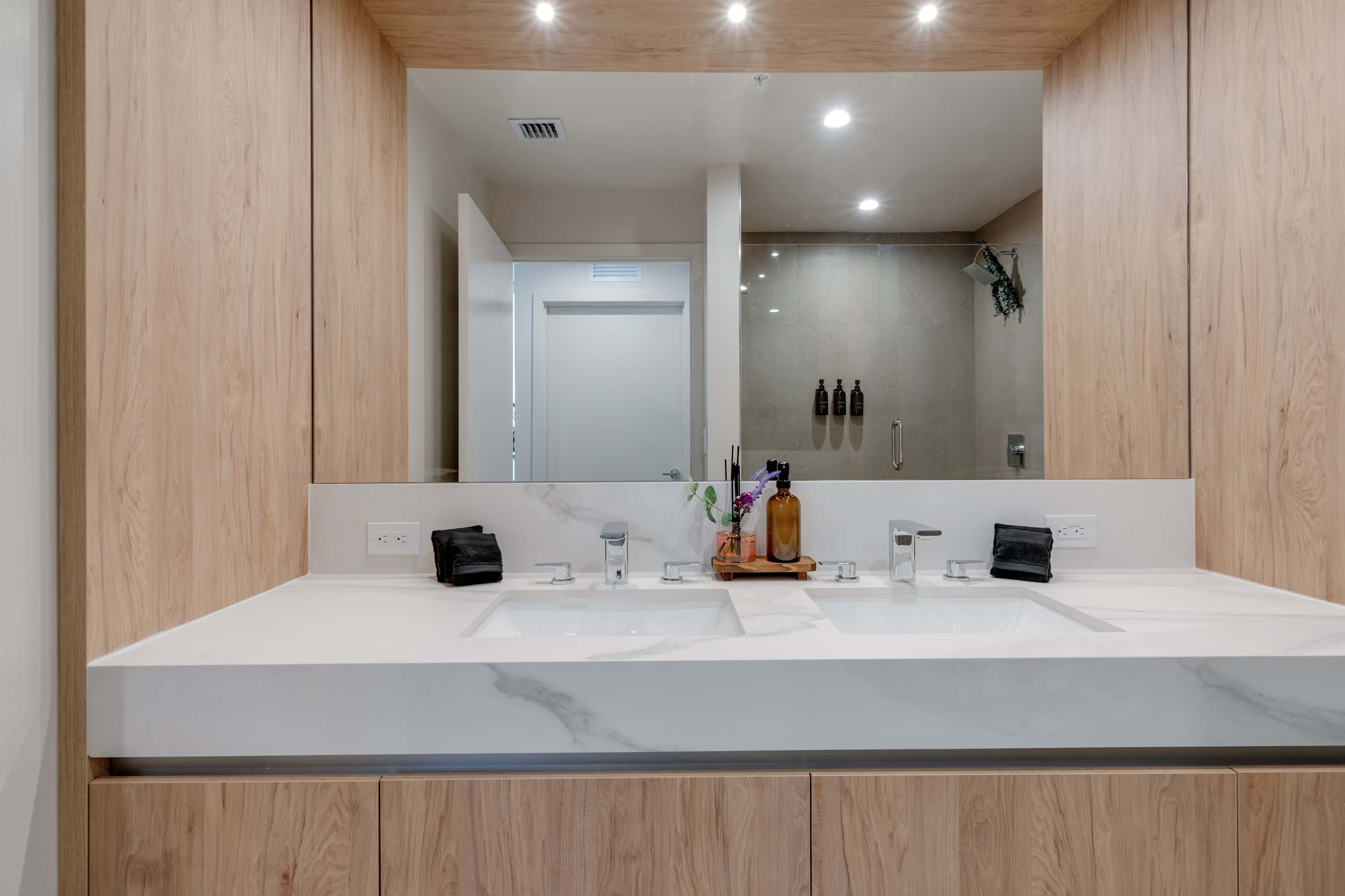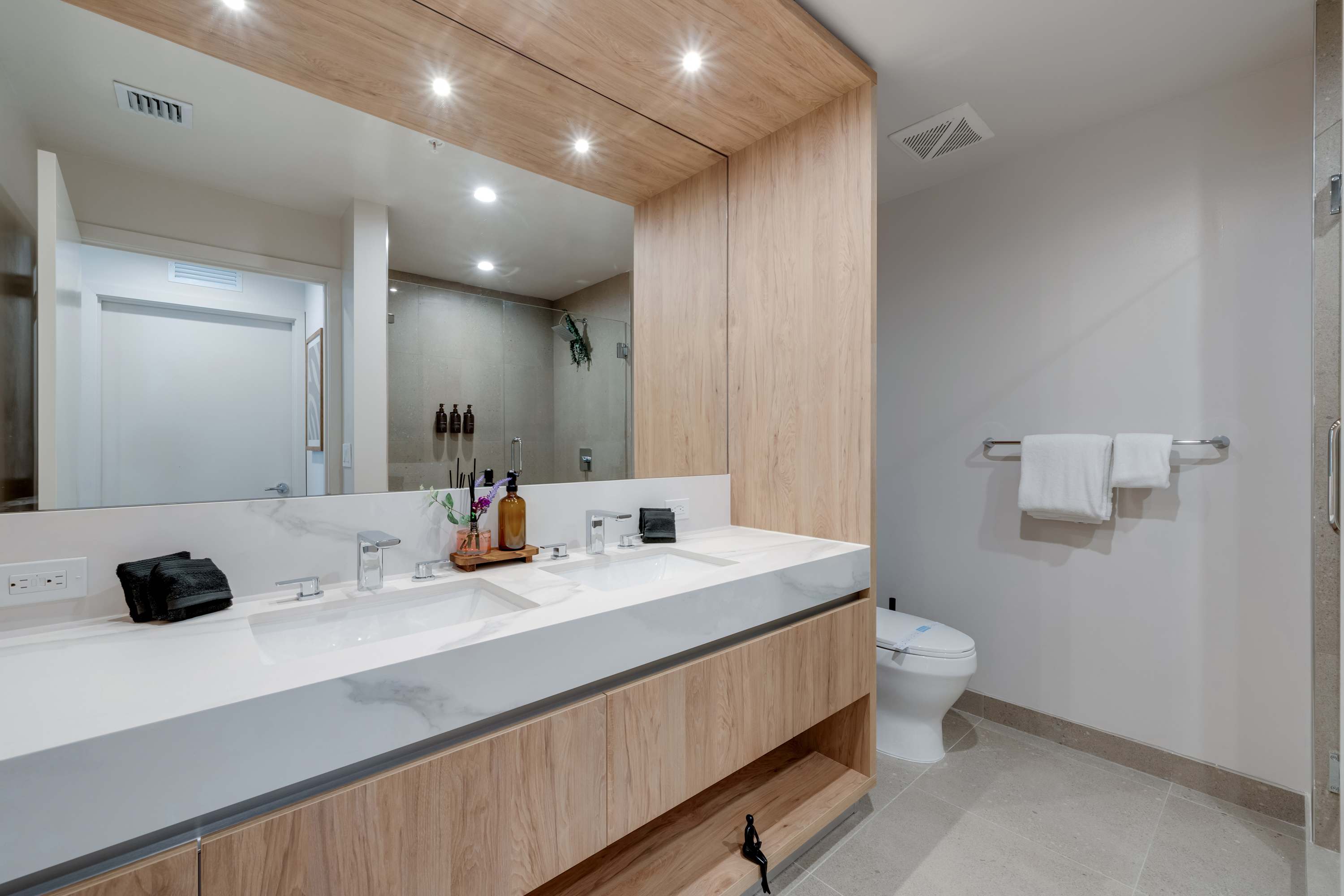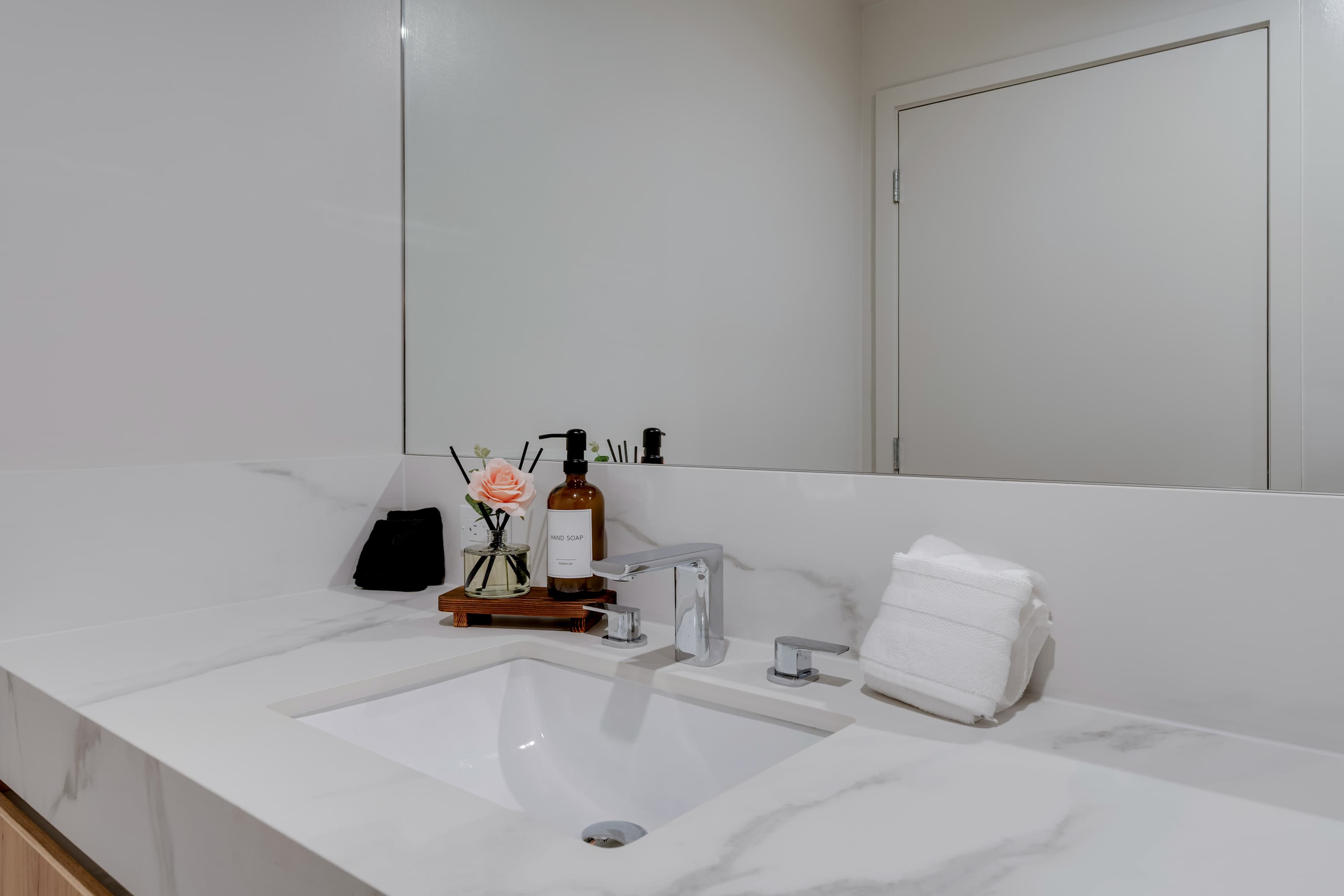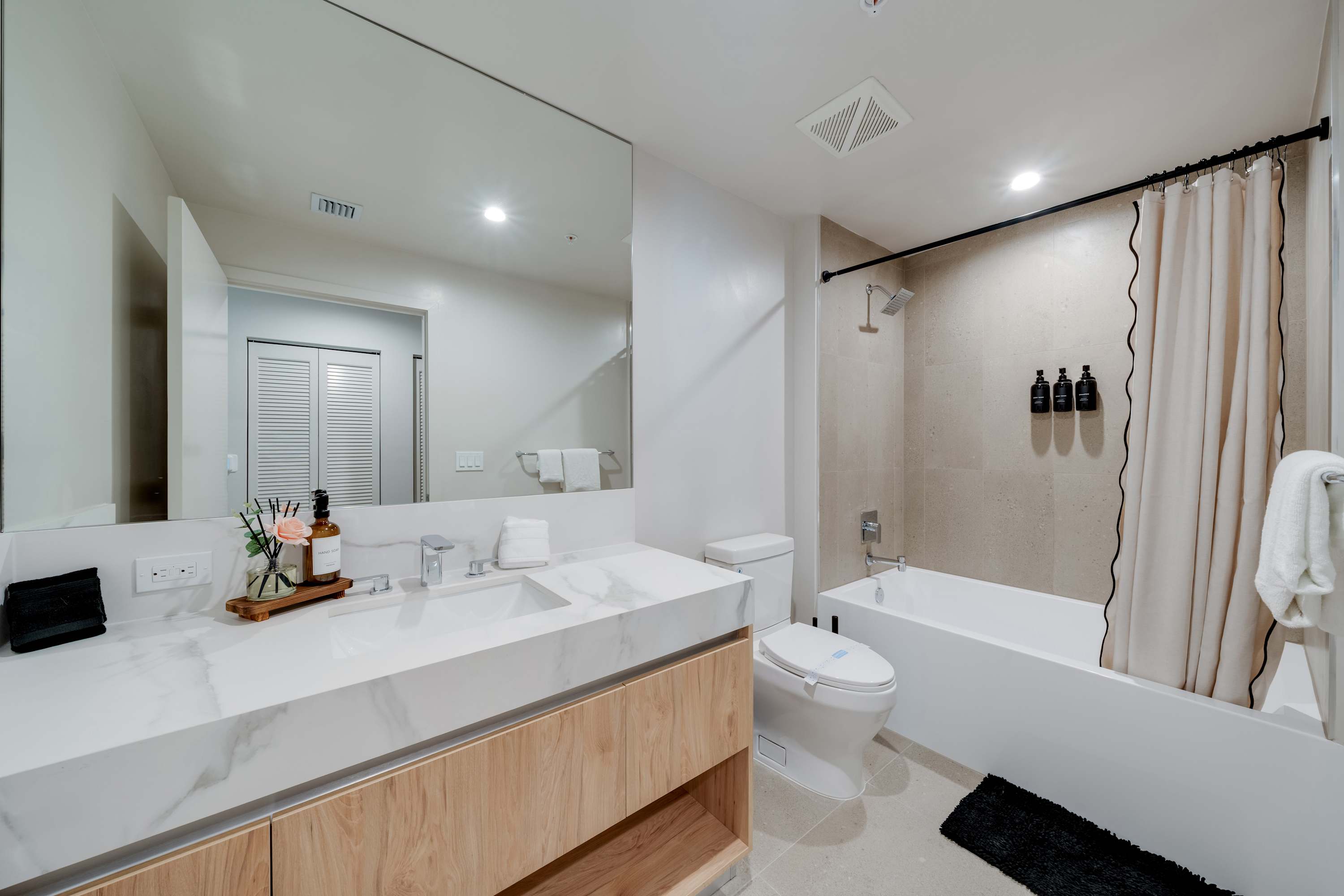 Includes WiFi, Smart TVs, ironing set, laundry facilities, and starter toiletries. Note: Washcloths and kitchen towels not included.