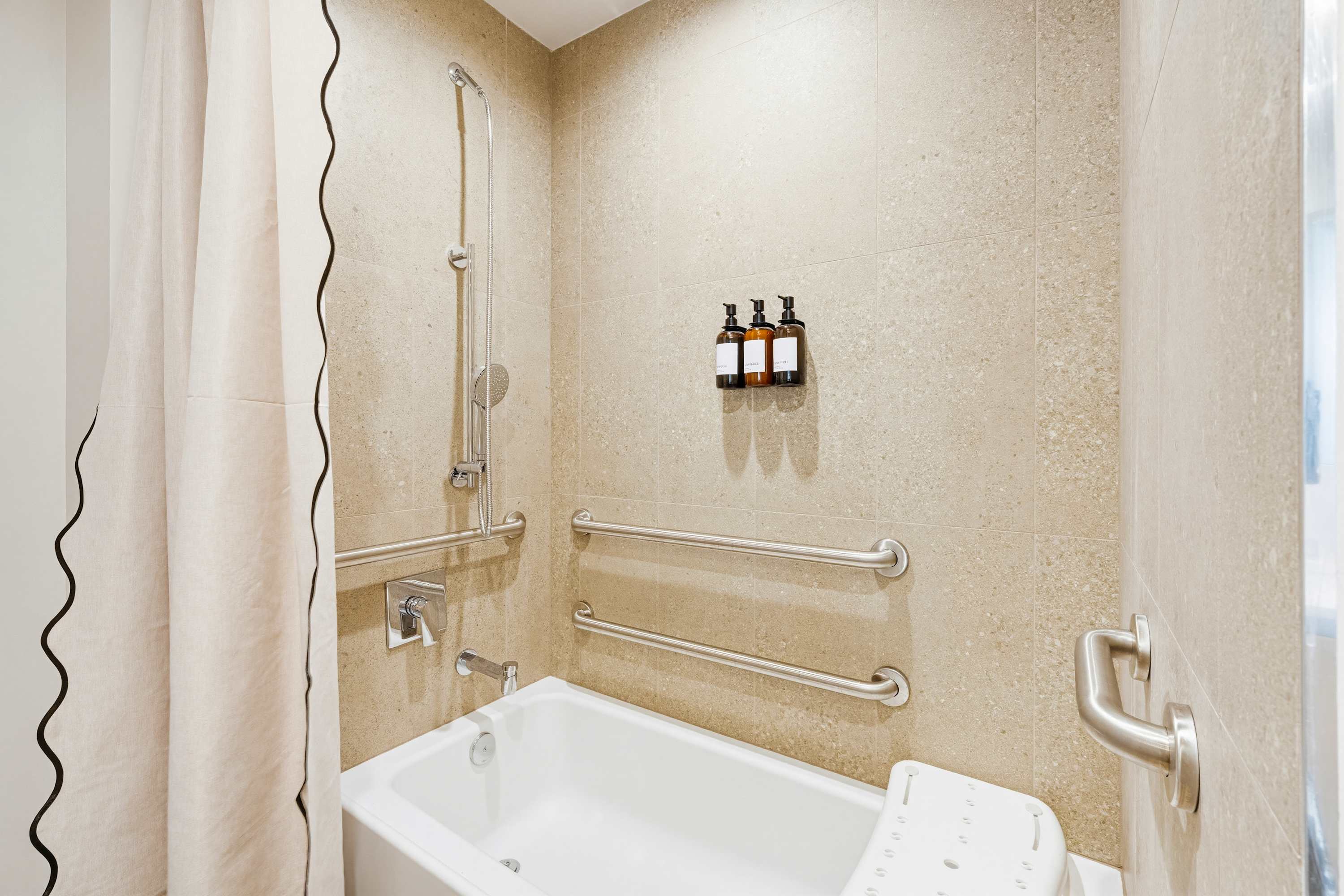 Welcome to a spacious downtown hideaway designed with comfort and flow in mind. This ADA-friendly residence features wider access, an open layout, and generous interiors wrapped in natural light. Clean lines, modern finishes, and skyline views create an easy, elevated vibe. Enjoy resort-style rooftop amenities, a bright living space, plush sleeping quarters, spa-inspired bath, and a breezy balcony made for slow mornings. Effortless city living, redefined.
