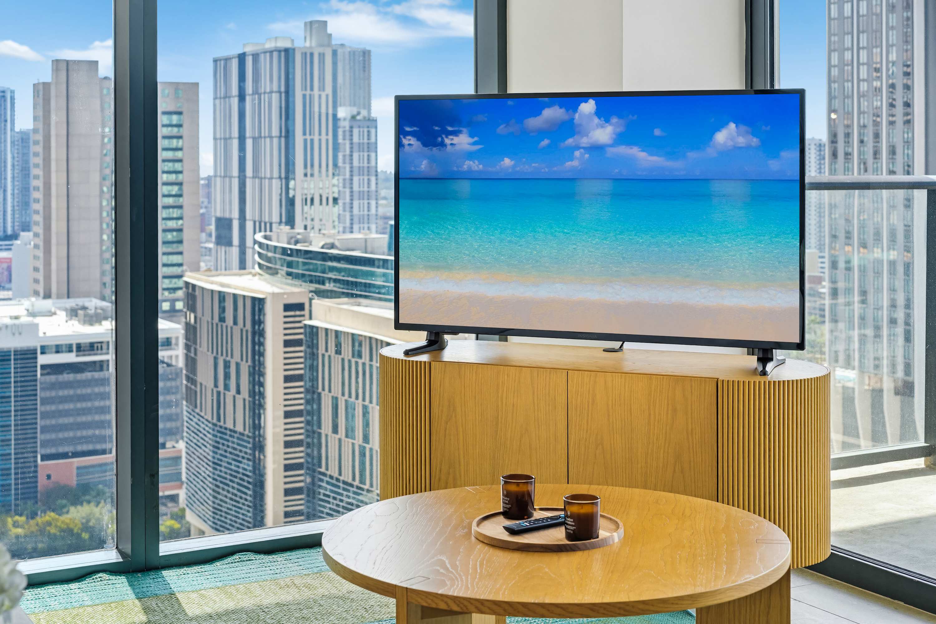 Includes WiFi, Smart TVs, ironing set, laundry facilities, and starter toiletries. Note: Washcloths and kitchen towels not included.