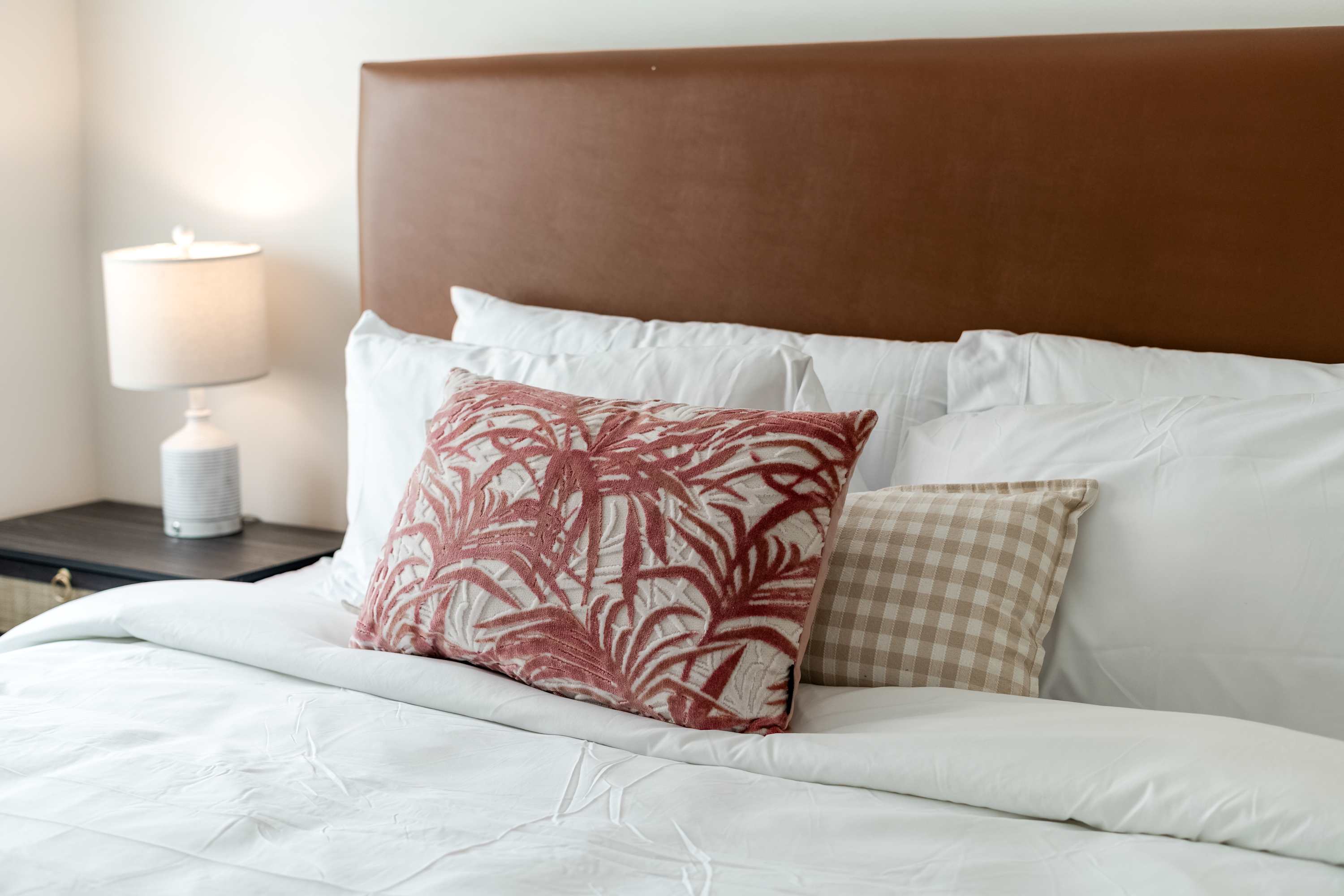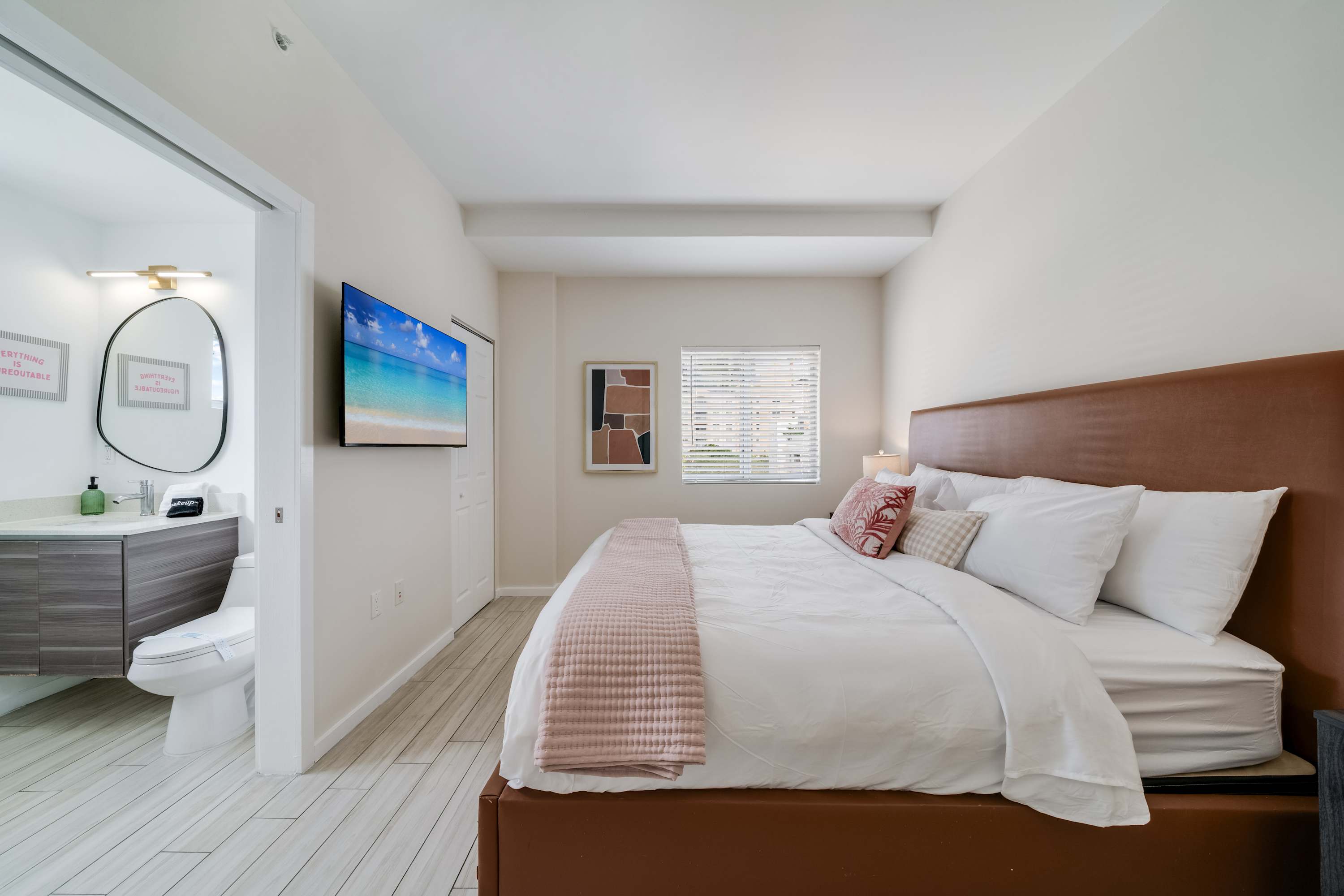Relax in a serene bedroom featuring a King bed with en-suite, Smart TV and ample closet space.