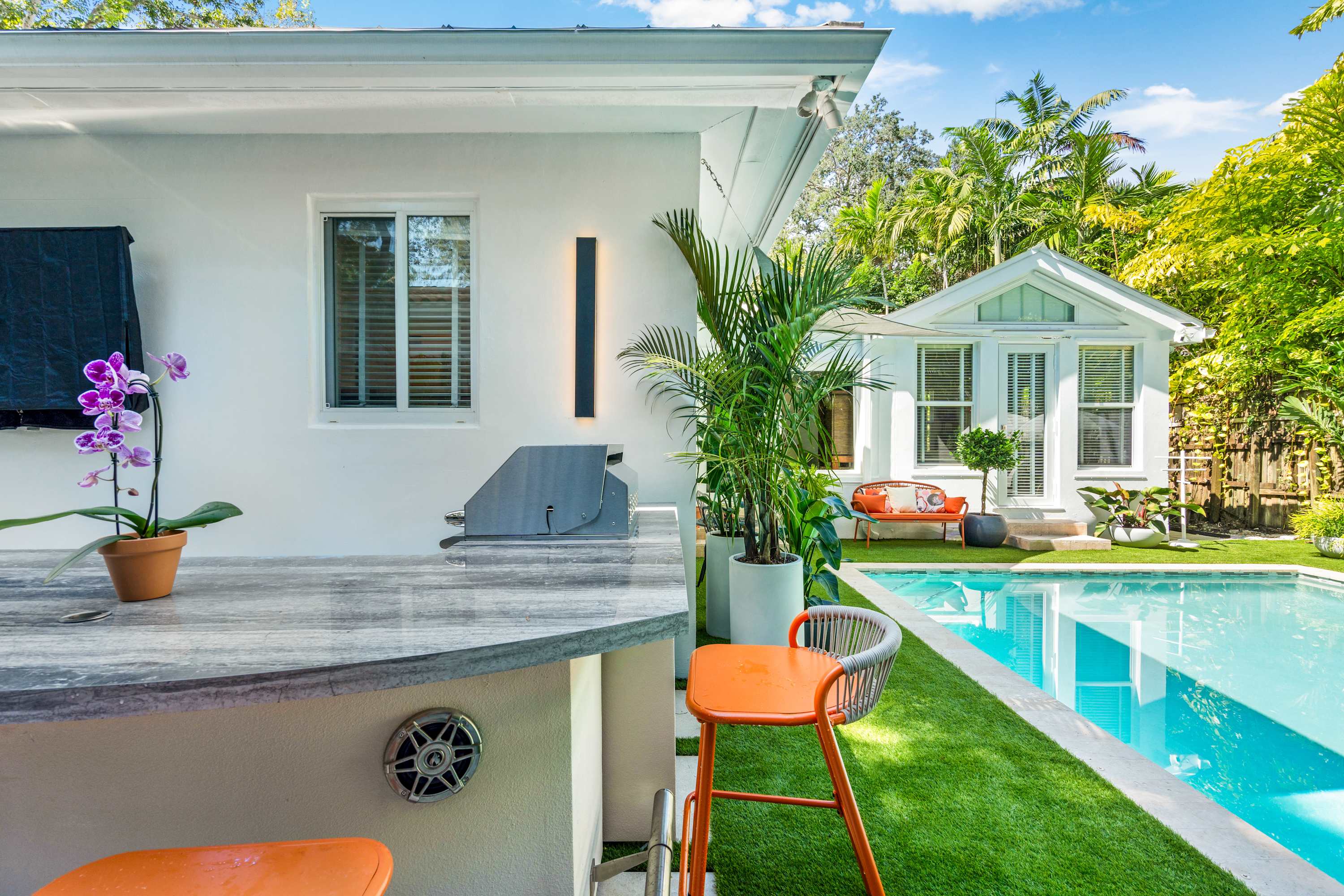 Escape to Garden Grove, a stylish Miami home nestled in the heart of Coconut Grove! This beautifully designed property boasts a private pool, perfect for a refreshing dip after a day of exploring. Enjoy the modern, artistic style throughout the home, with a fully stocked kitchen and multiple seating areas, including a built-in BBQ grill for outdoor dining. Located in a tranquil neighborhood, you're just a short drive from the vibrant CocoWalk, local cafes, and the stunning Biscayne Bay.