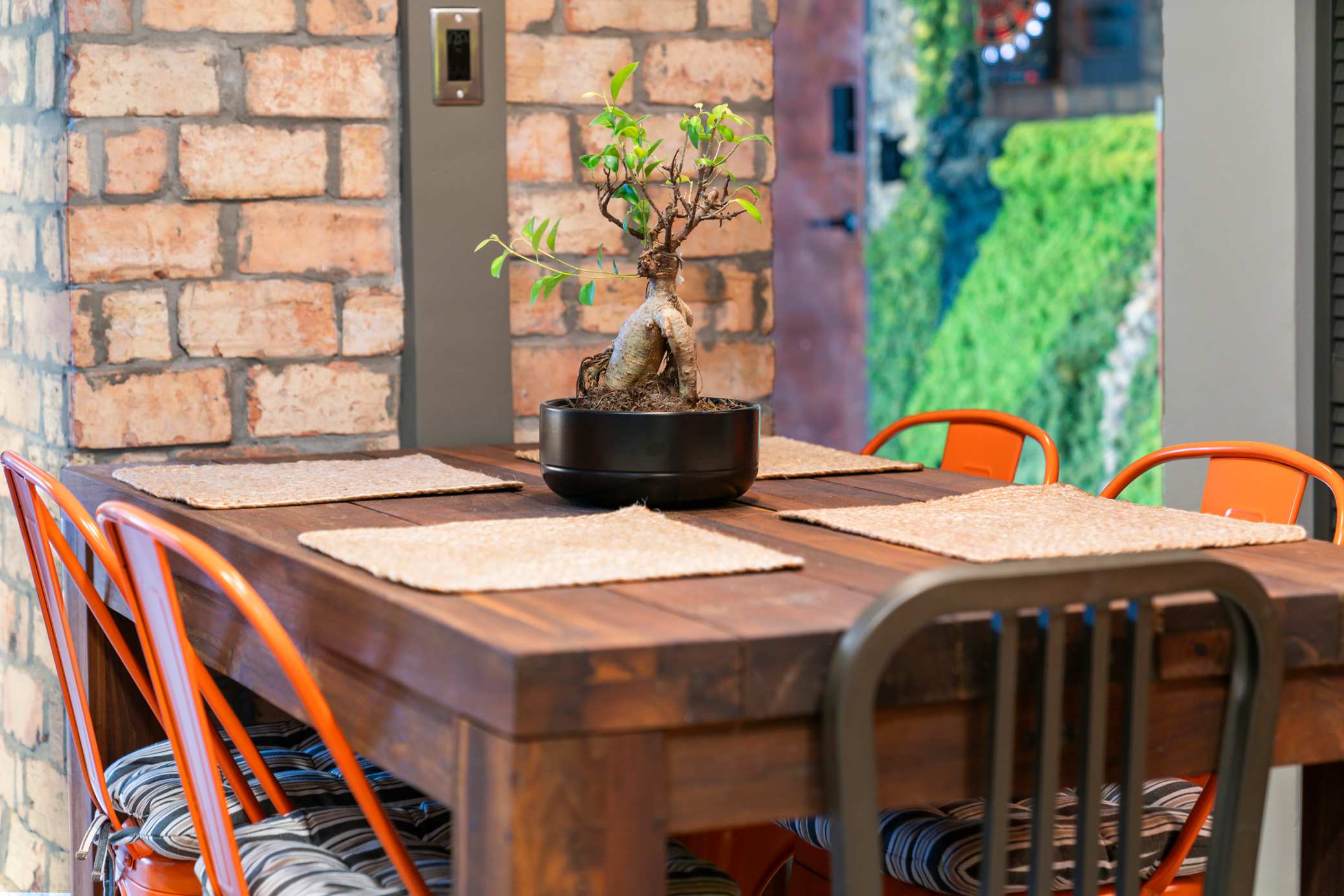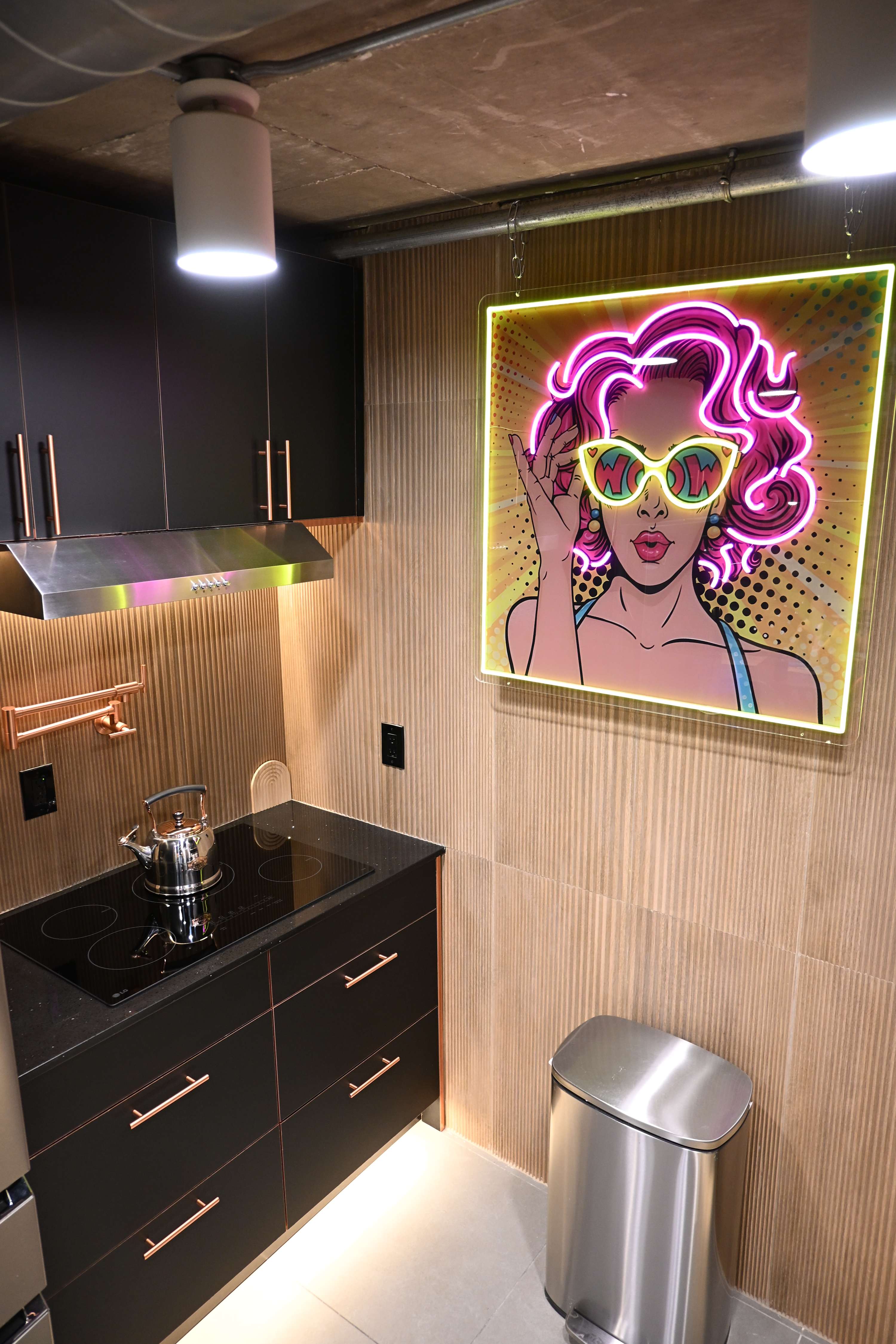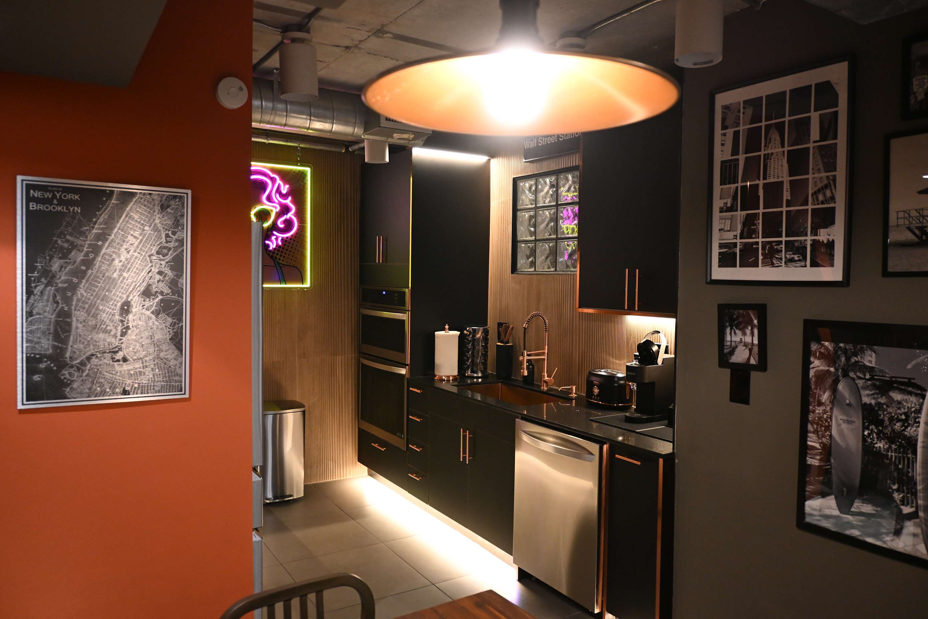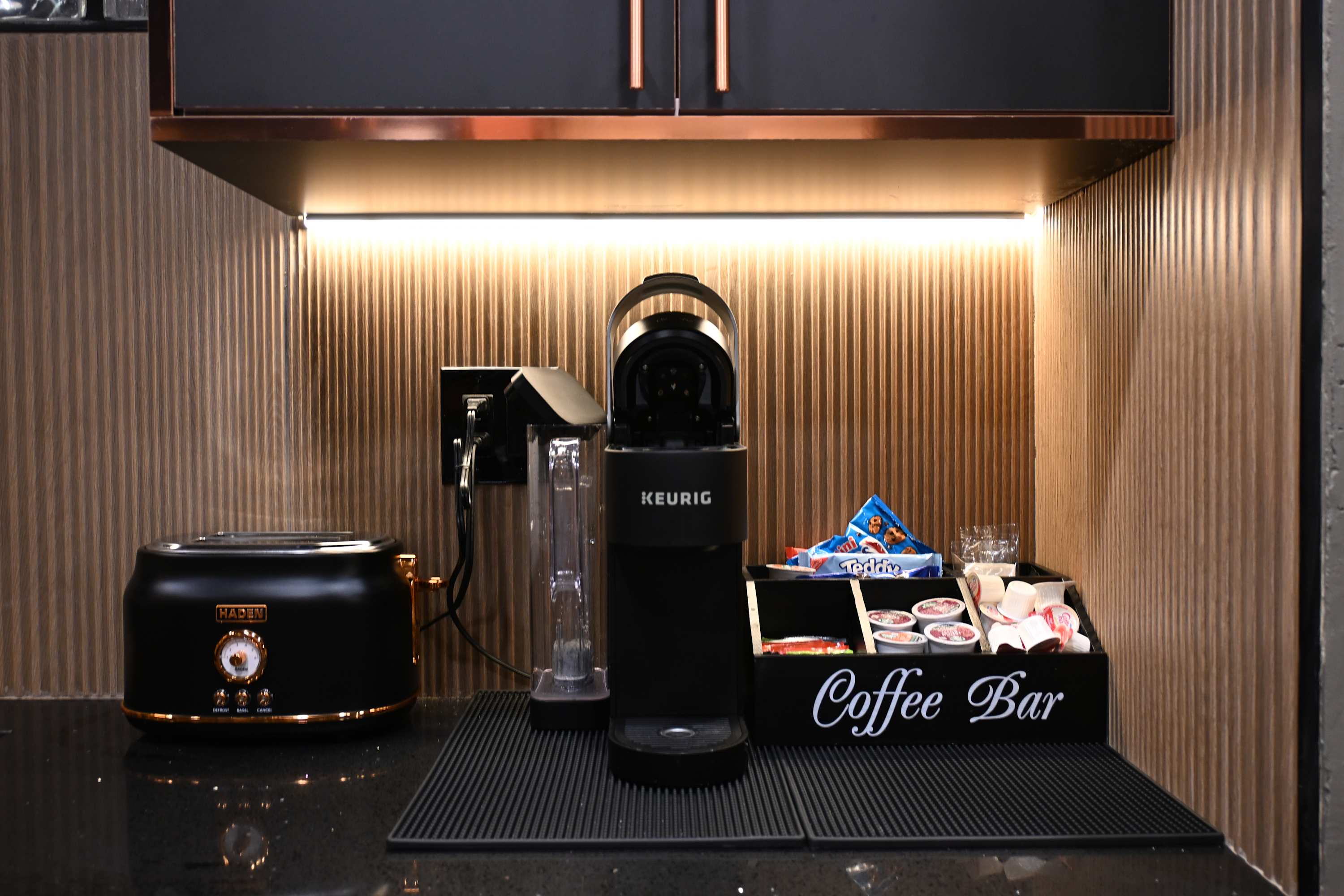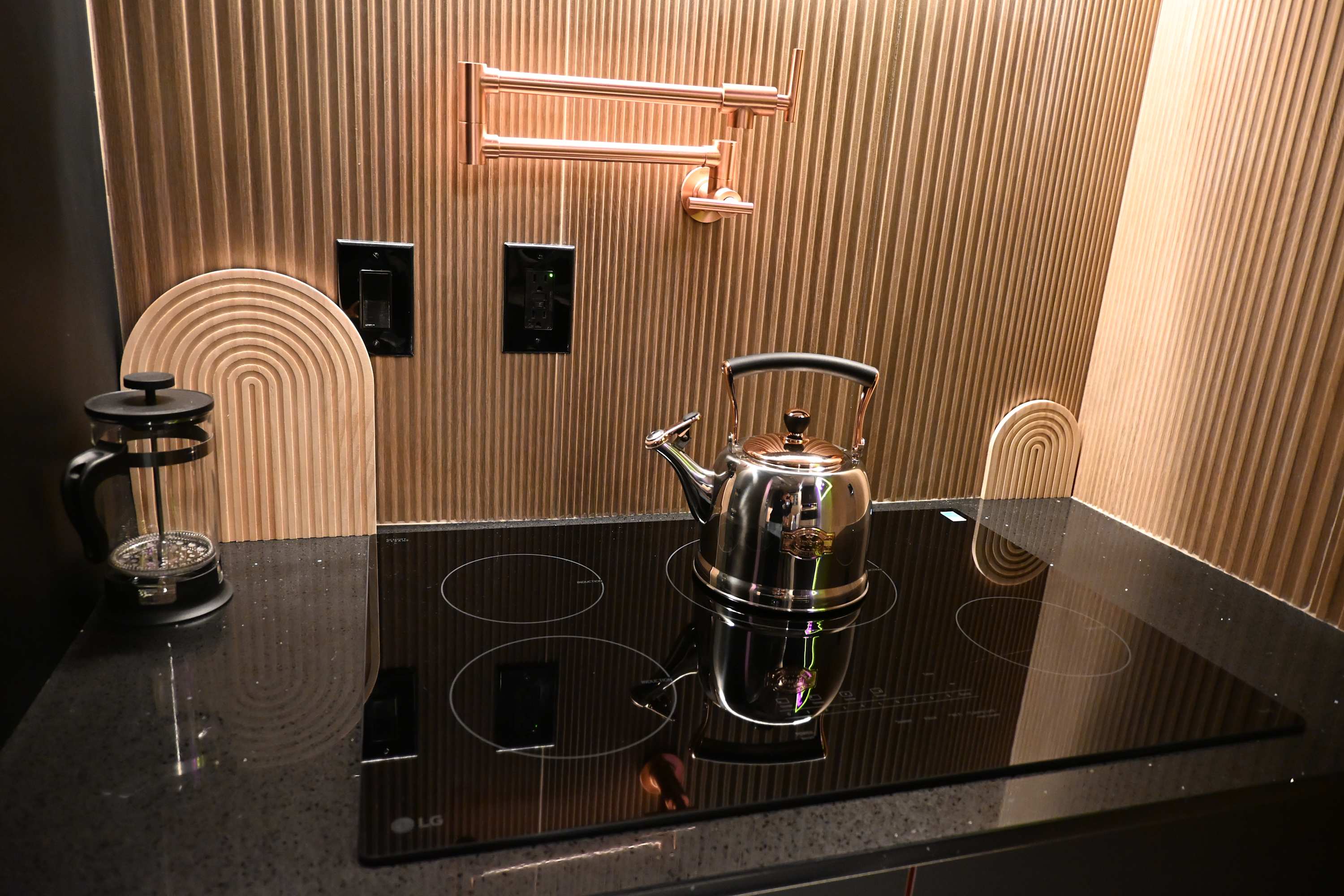 Step into a sleek, industrial-style kitchen where form meets function. Fully equipped with premium appliances, it’s designed for everything from a quick morning coffee to a full dinner at home. Thoughtfully stocked with essentials, quality cookware, and a curated bar set. Pour a glass of wine, soften the lights, and settle into the loft’s warm, elevated rhythm for a meal cooked at home.