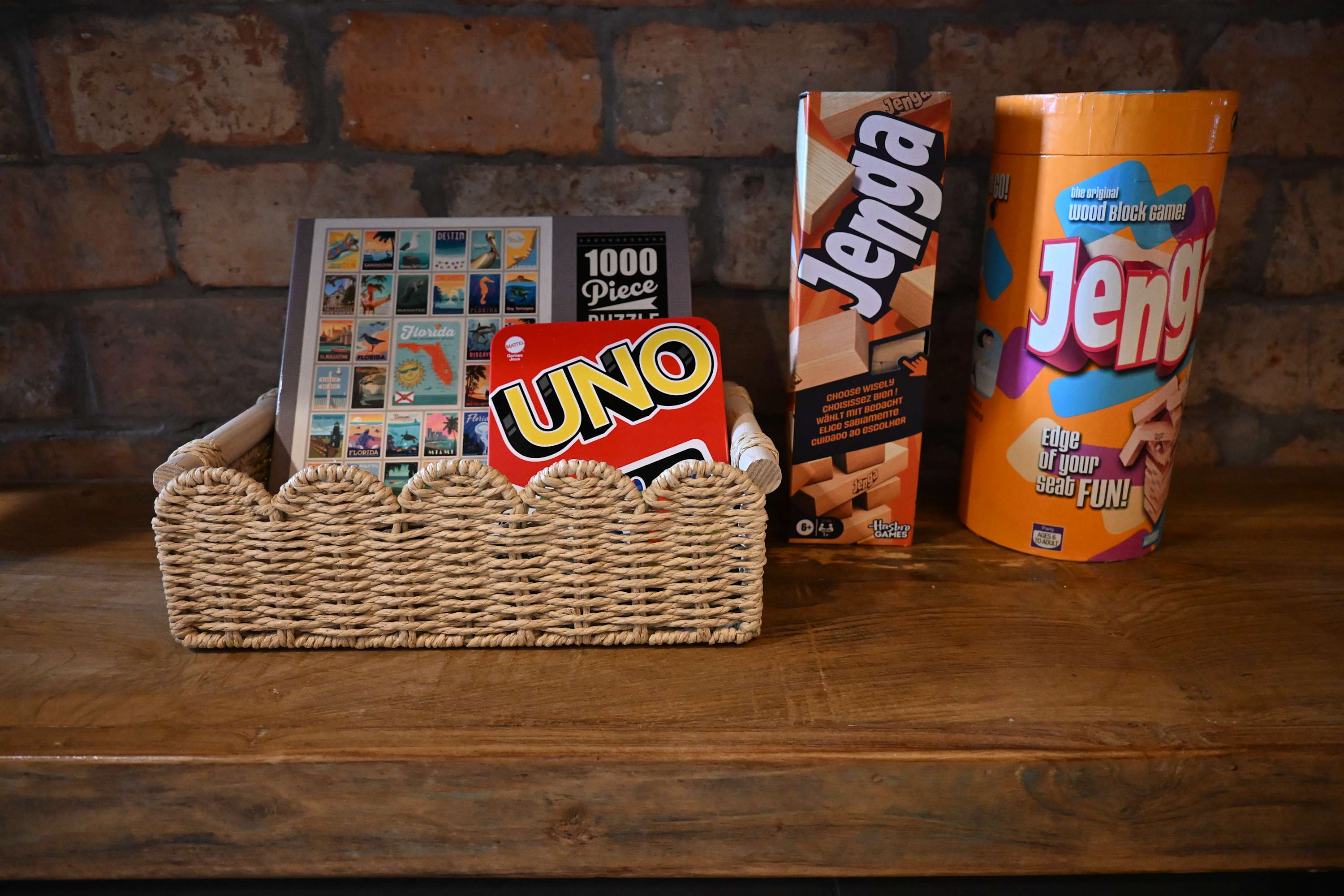 We provide essentials like WiFi, Smart TVs, an ironing set, laundry facilities, a portable crib, toiletries, linens, and towels.