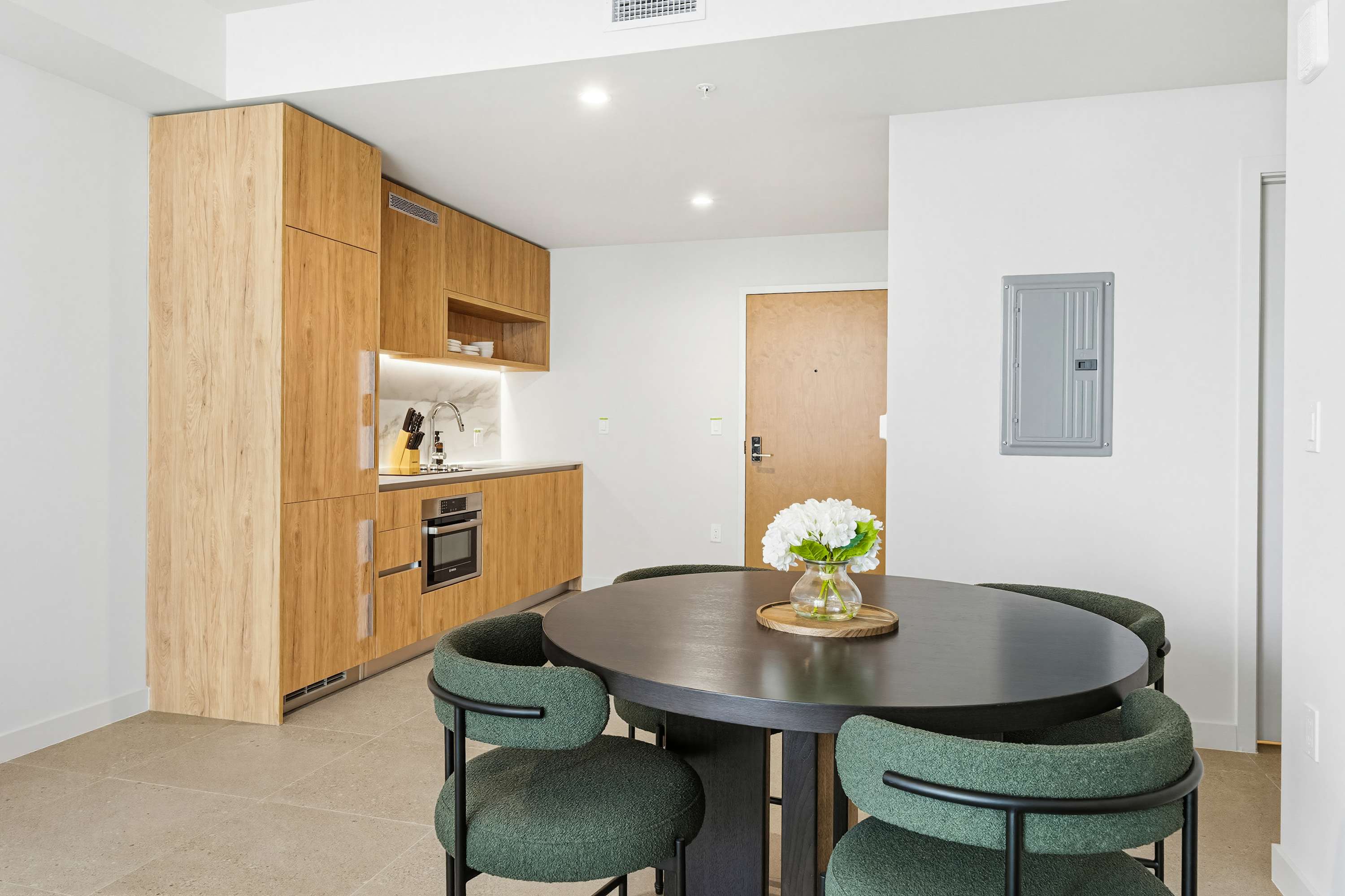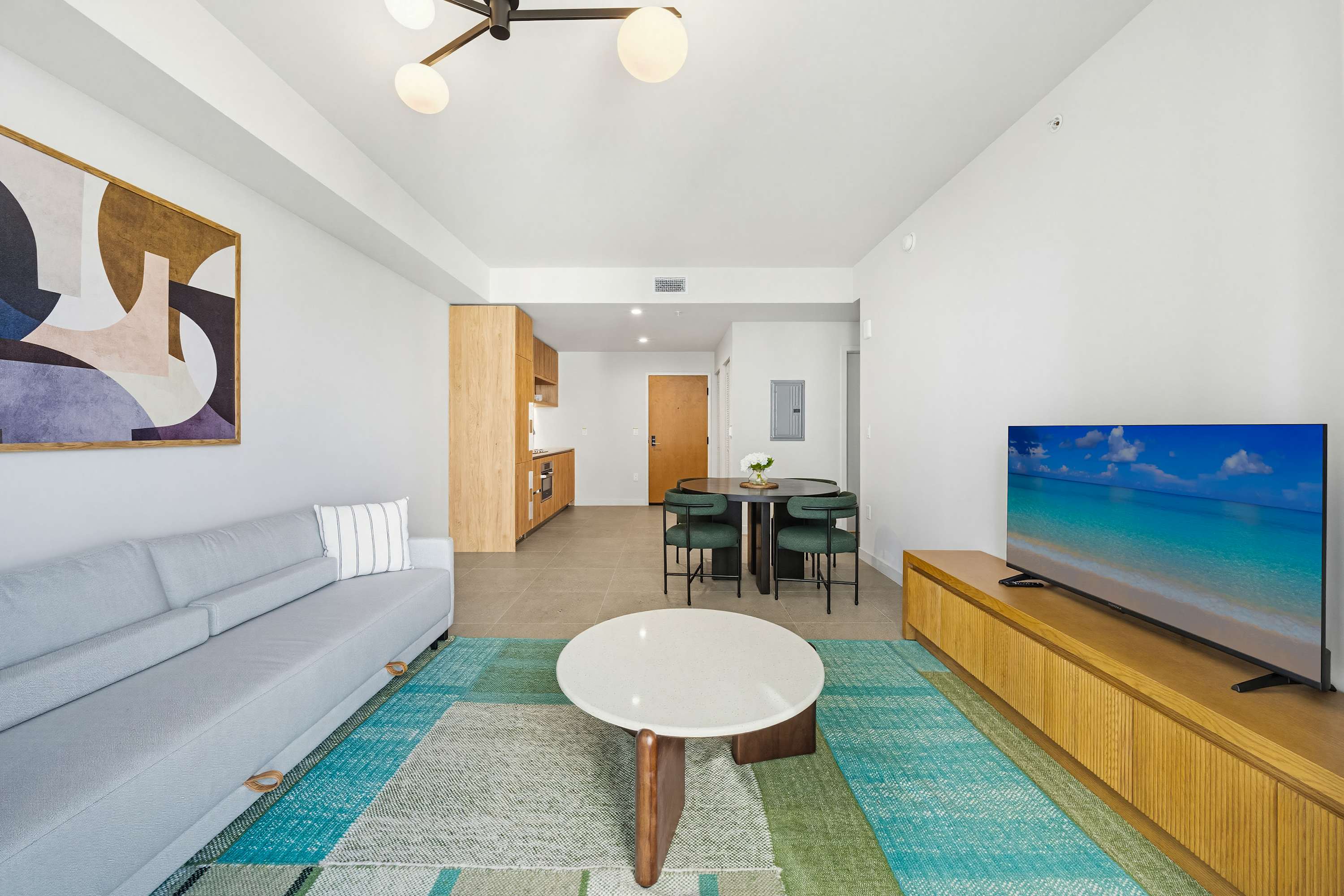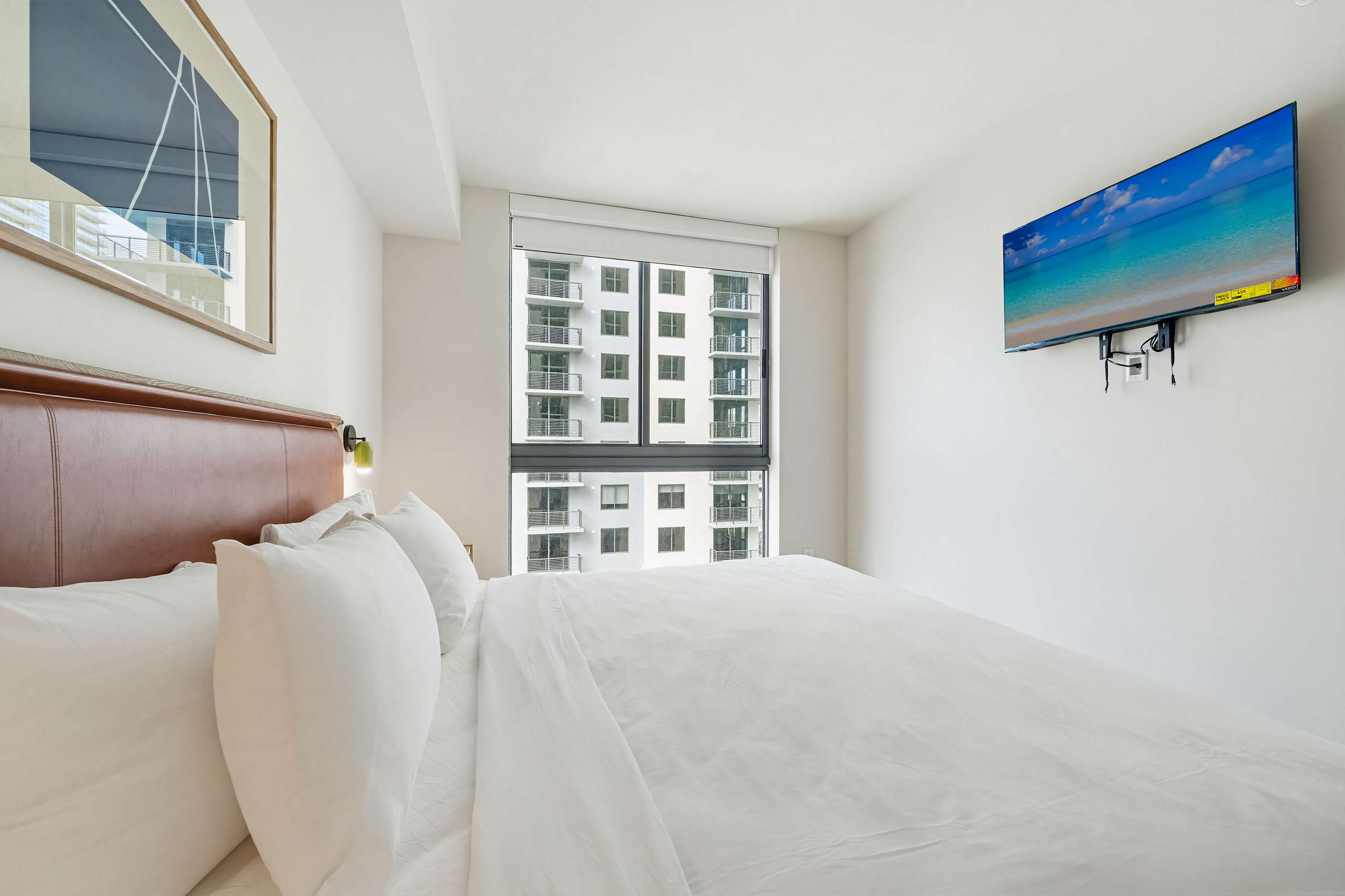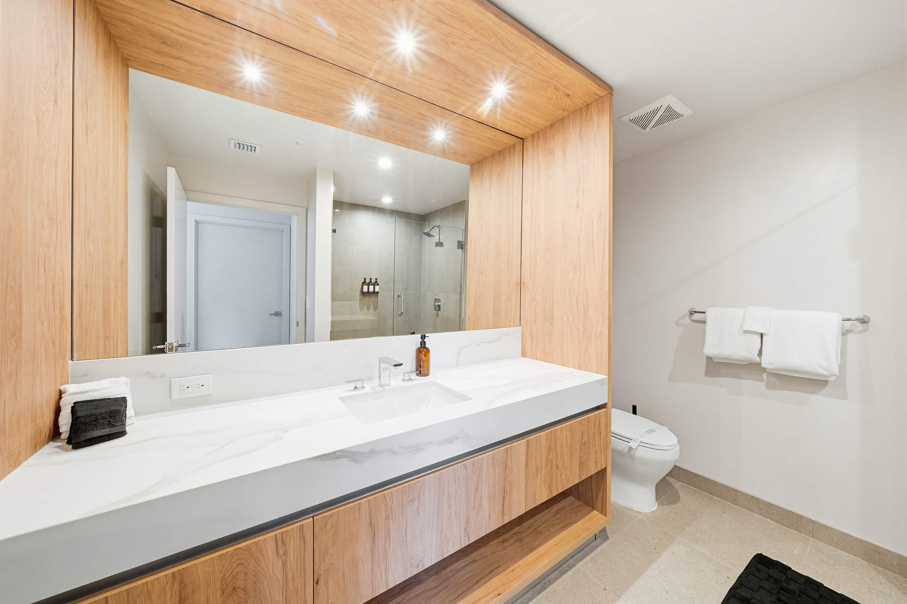 Step into a thoughtfully styled city retreat where modern design meets quiet elegance. Sun-filled interiors, refined finishes, and sweeping city views set an easy, calming tone. Enjoy top-tier rooftop amenities, a bright open living space, serene bedroom with plush bedding, spa-inspired baths, and a breezy balcony perfect for morning coffee. A polished downtown escape you’ll want to return to.