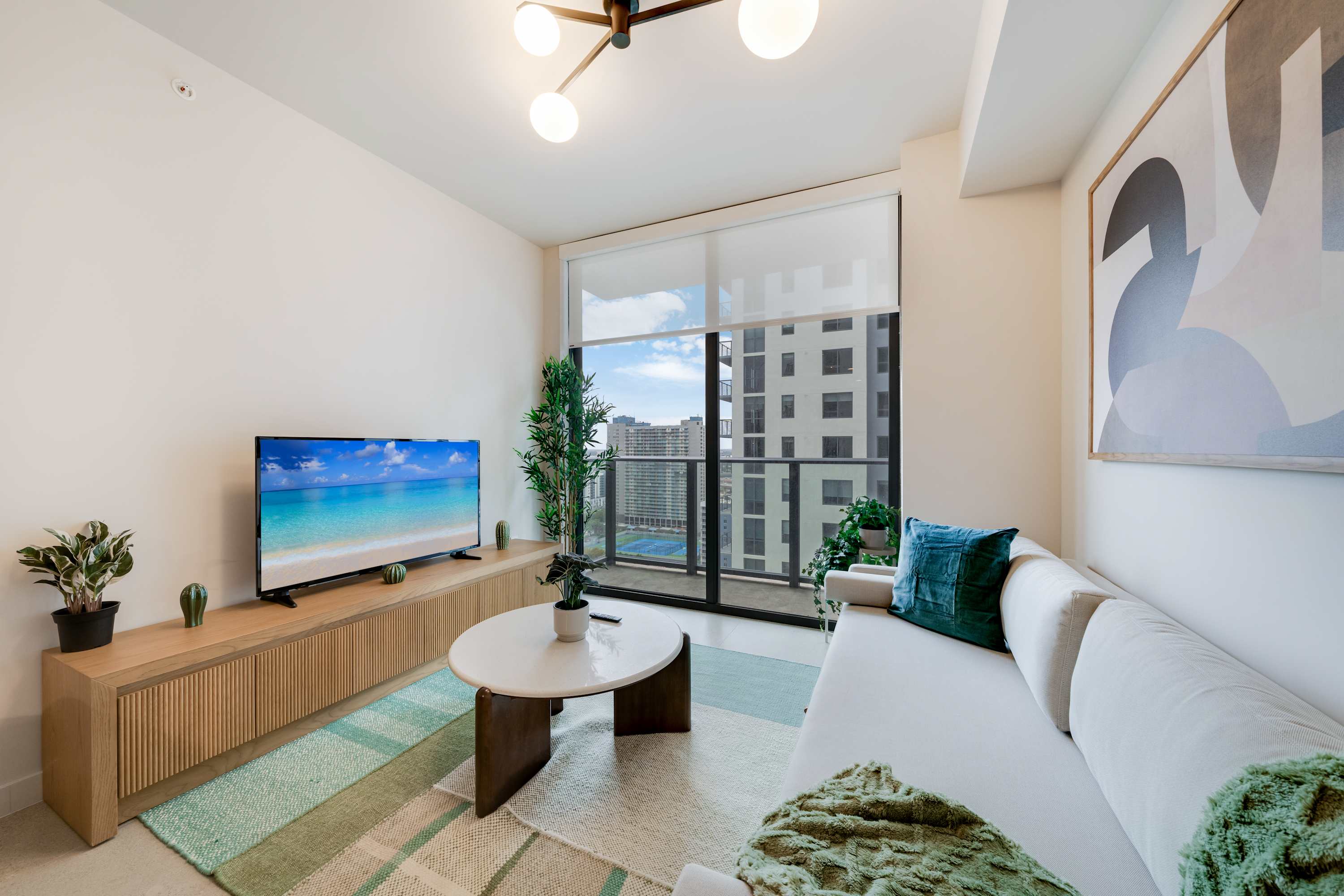 This cozy space gives you location, amenities and a feel for home. Its designed with clean lines and an easy flow, this modern escape features a spa-inspired bath, a spacious yet cozy interior, and a premium sofa bed for extra guests. Enjoy slow mornings on the balcony and sunset views from the rooftop pool. Meet your perfect Miami home base.