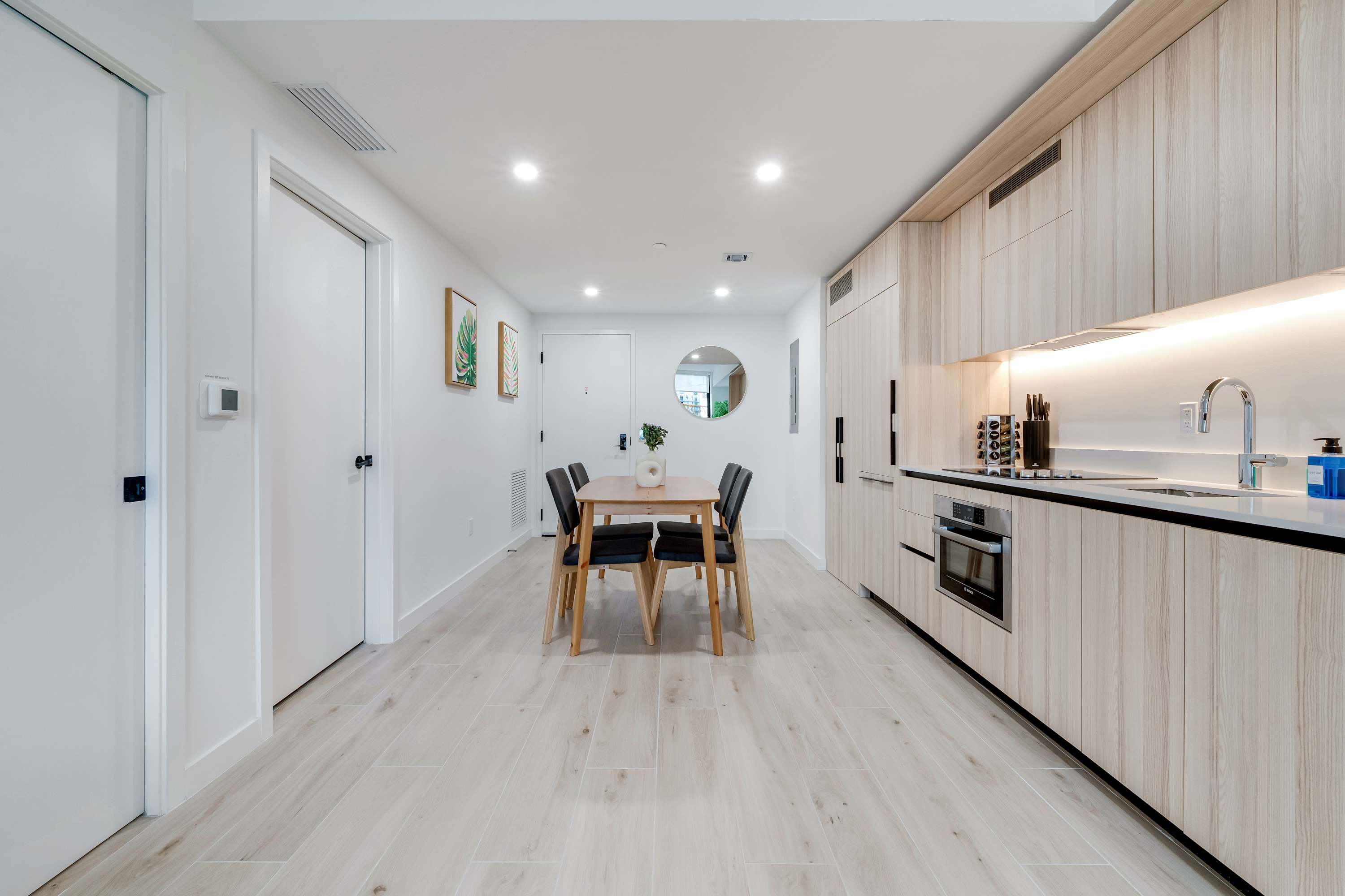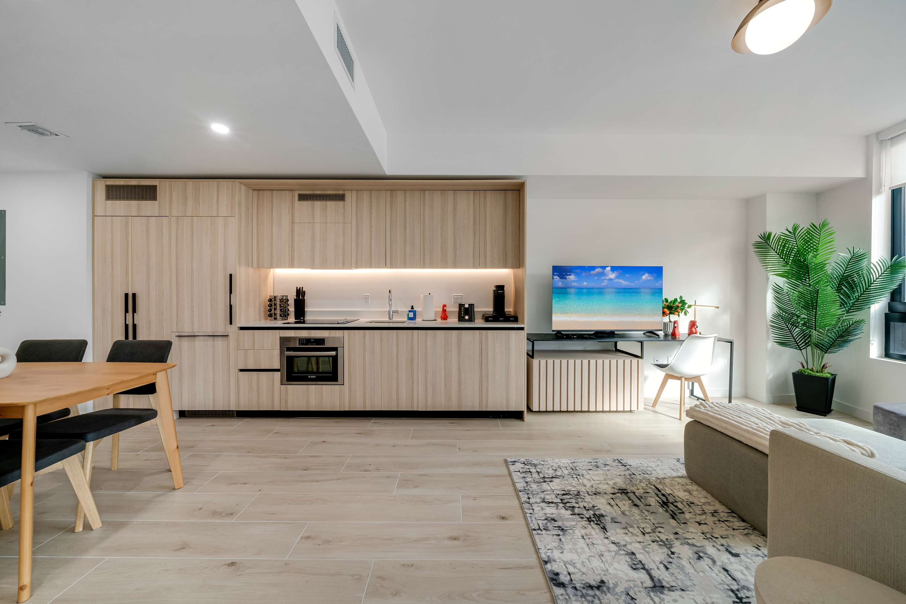 Includes WiFi, Smart TVs, ironing set, laundry facilities, and starter toiletries. Note: Washcloths and kitchen towels not included.