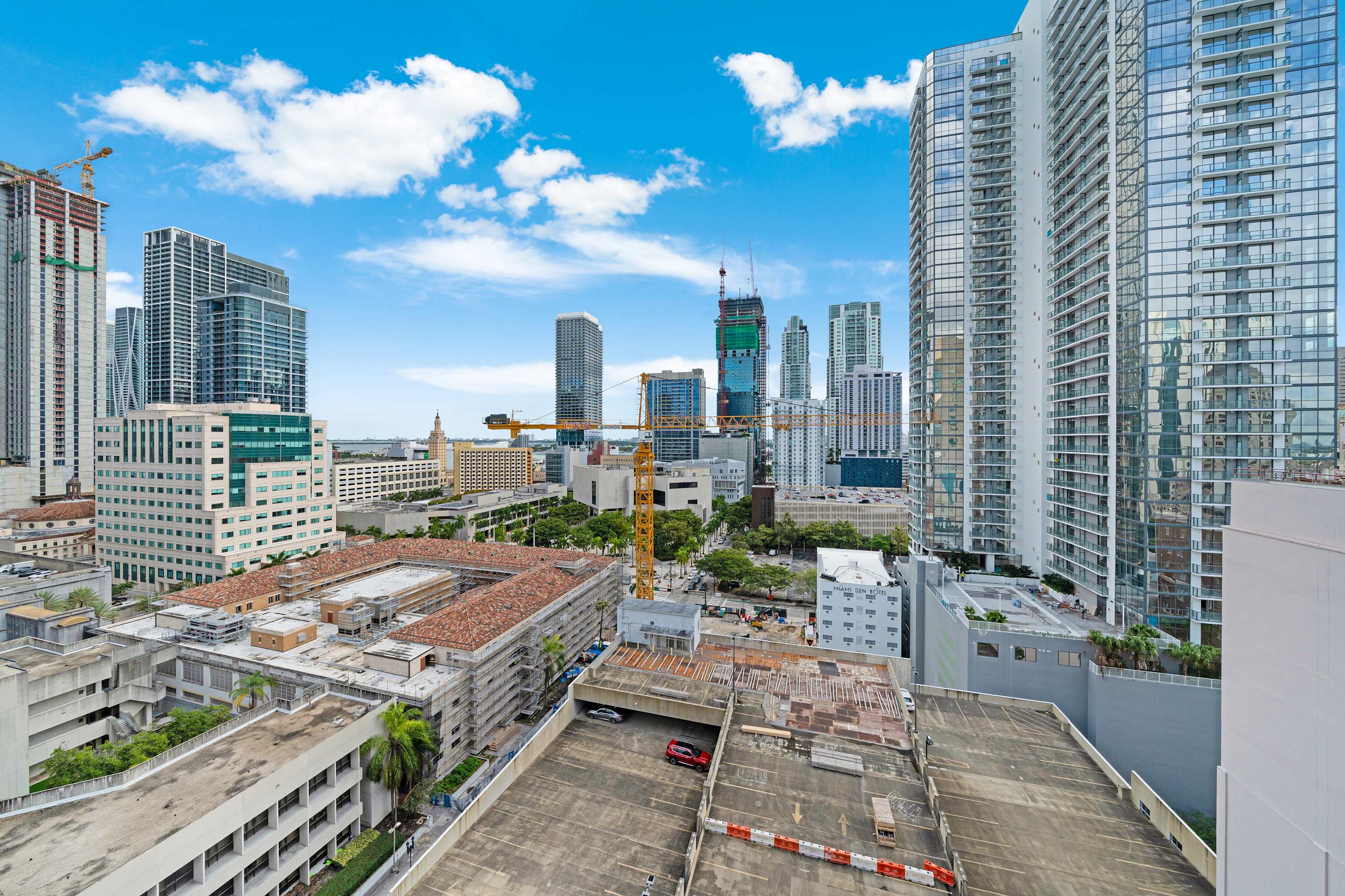 Co-working floor featuring private meeting rooms, conference room, lounge area, high-speed Internet, and a full-service kitchen. Rooftop amenity deck with plunge swim spa, fire pit, summer kitchen, and gorgeous views of Downtown Miami and Biscayne Bay. On-site cafe offering delivery service throughout the building, to residences and to amenity areas 24/7 security services, high-speed elevators, and controlled property access