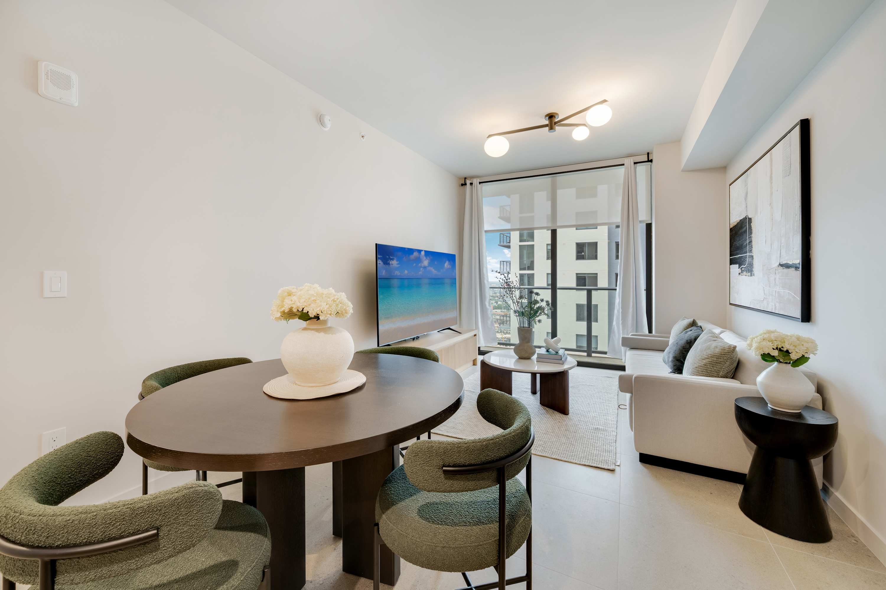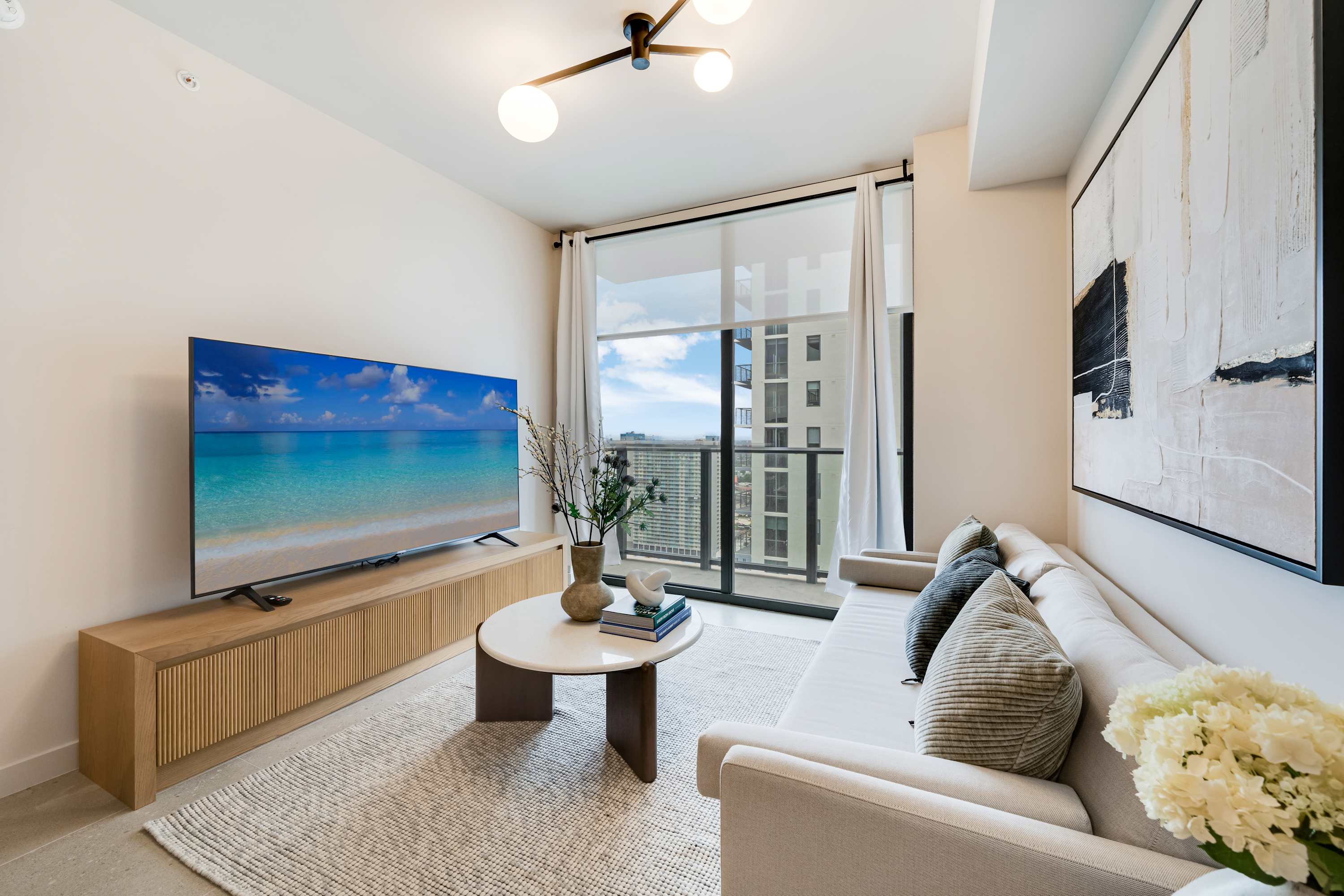 This cozy space gives you location, amenities and a feel for home. Its designed with clean lines and an easy flow, this modern escape features a spa-inspired bath, a spacious yet cozy interior, and a premium sofa bed for extra guests. Enjoy slow mornings on the balcony and sunset views from the rooftop pool. Meet your perfect Miami home base.