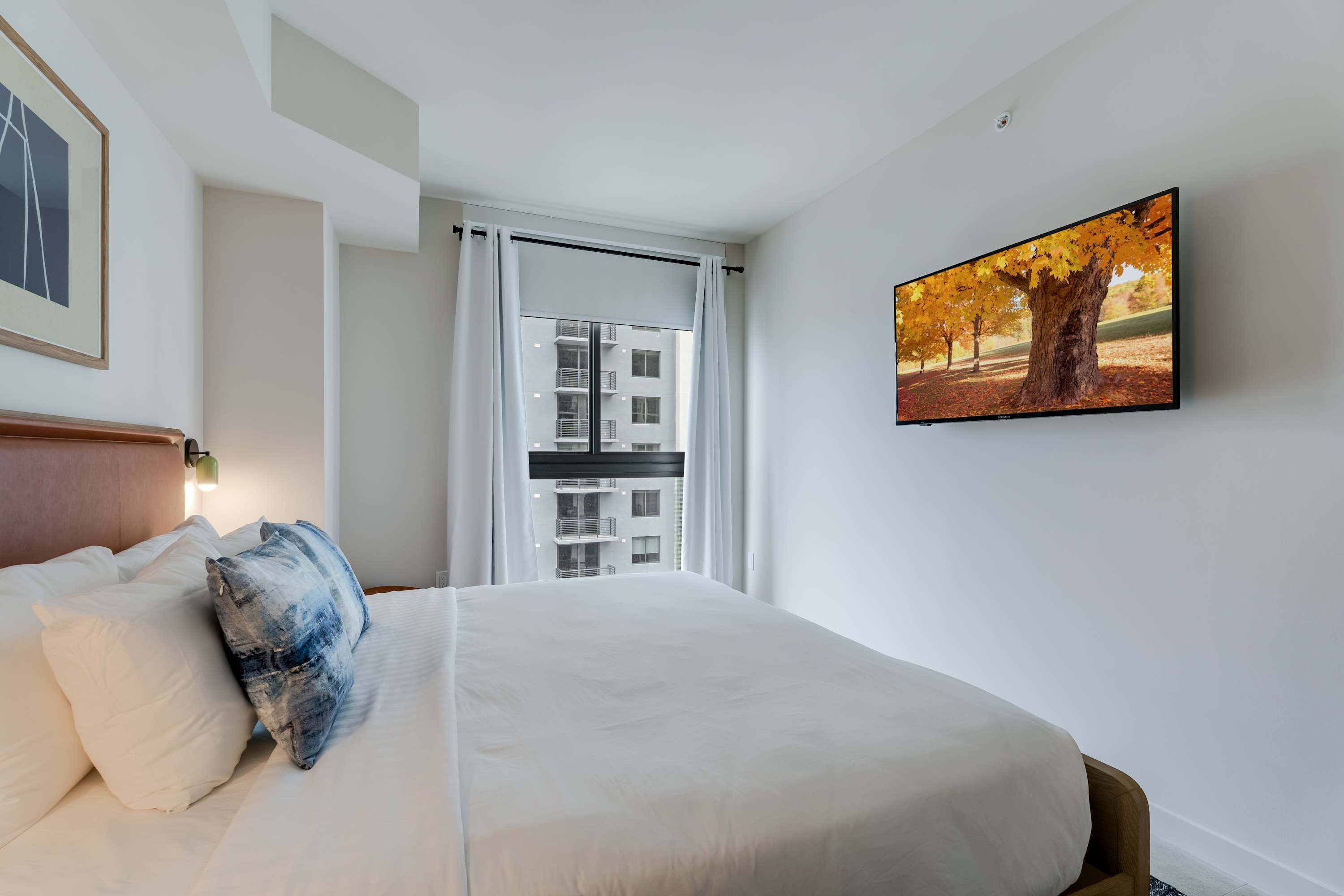 Includes WiFi, Smart TVs, ironing set, laundry facilities, and starter toiletries. Note: Washcloths and kitchen towels not included.